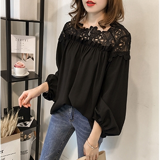 オフショル風 シンプル レース ブラウス トップス カットソー 袖あり 長袖 ボリューム袖 オフショルダー オフショル 襟なし 切り替えデザイン ドッキング かわいい 大人可愛い きれいめ シンプル カジュアル 大人 上品 おしゃれ 大人女子 こなれ感 ラブリー キュート ガーリー