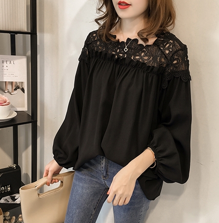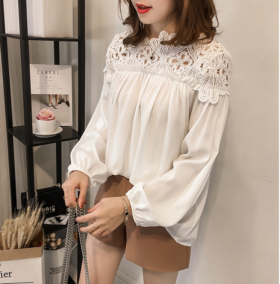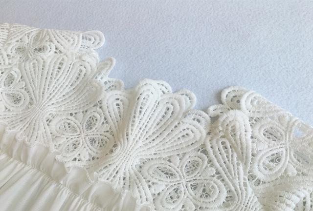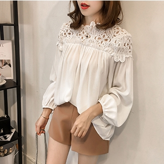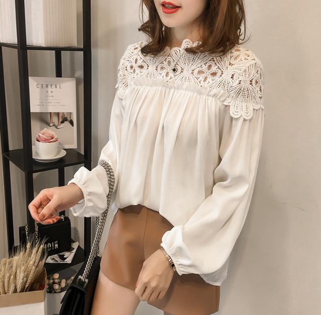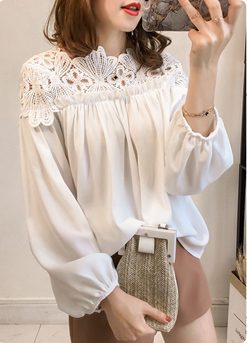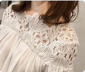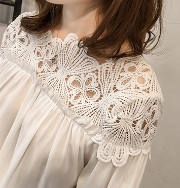 レースで肩を覆うデザインなので露出しすぎず着こなしやすいブラウス。