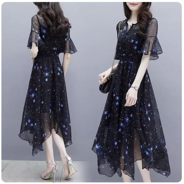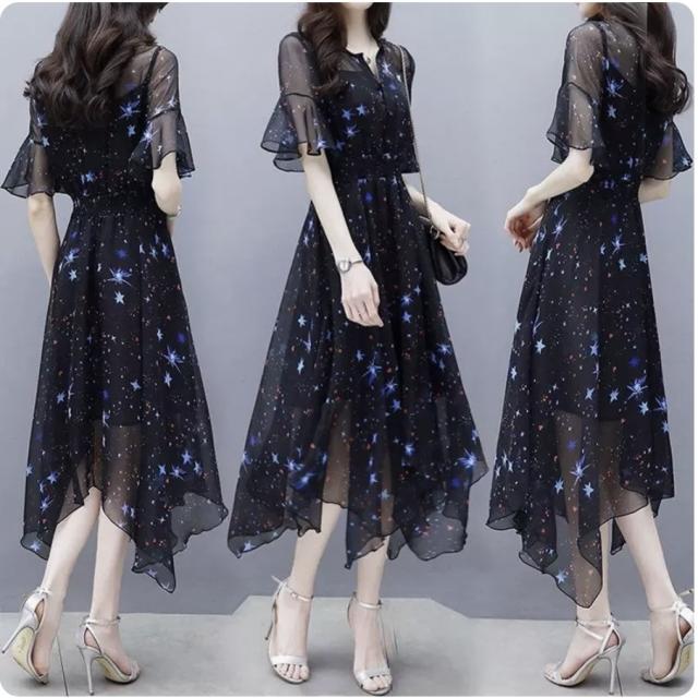 ワンピース フレアワンピース ワンピドレス 膝丈 ひざ丈 ミモレ ミモレ丈 袖あり 半袖 フレアスリーブ 襟なし セミフレア Aライン アシンメトリー チュール シフォン フリル 透け感 シースルー かわいい 大人可愛い きれいめ 大人 上品 おしゃれ 大人女子 こなれ感 個性的 クール モード系 セクシー エレガント モダン 春 夏 10代 20代 30代 レディース デート お出かけ 女子会 休日 パーティー イベント 着回し 普段使い 重ね着 韓国 オルチャン ファッション コーデ スタイル 楽ちん
