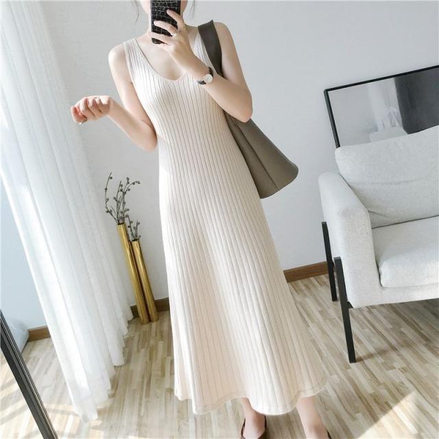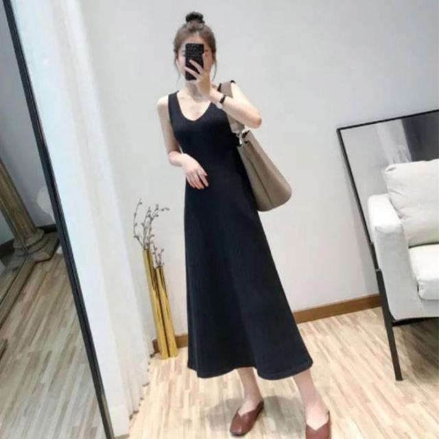 ワンピース フレアワンピース ロング ロング丈 袖なし ノースリーブ Vネック 襟なし セミフレア スリム タイト 細身 Aライン マーメイド リブ リブニット かわいい 大人可愛い きれいめ シンプル カジュアル 大人 上品 おしゃれ 大人女子 こなれ感 ラフ ルーズ 個性的 クール モード系 セクシー エレガント モダン とろみ感 抜け感 無地 夏 レディース デート お出かけ 女子会 休日 着回し 普段使い 重ね着 韓国 オルチャン ファッション コーデ スタイル 楽ちん 体系カバー プチプラ