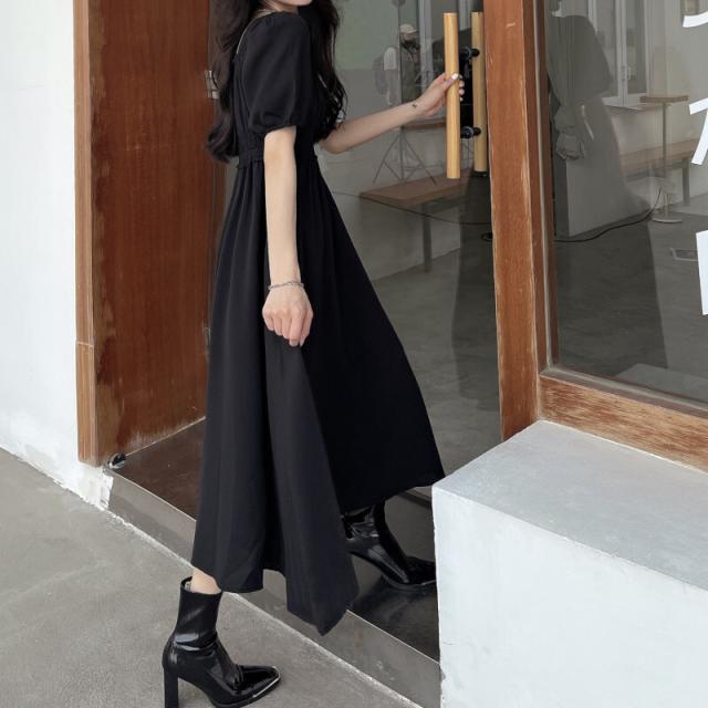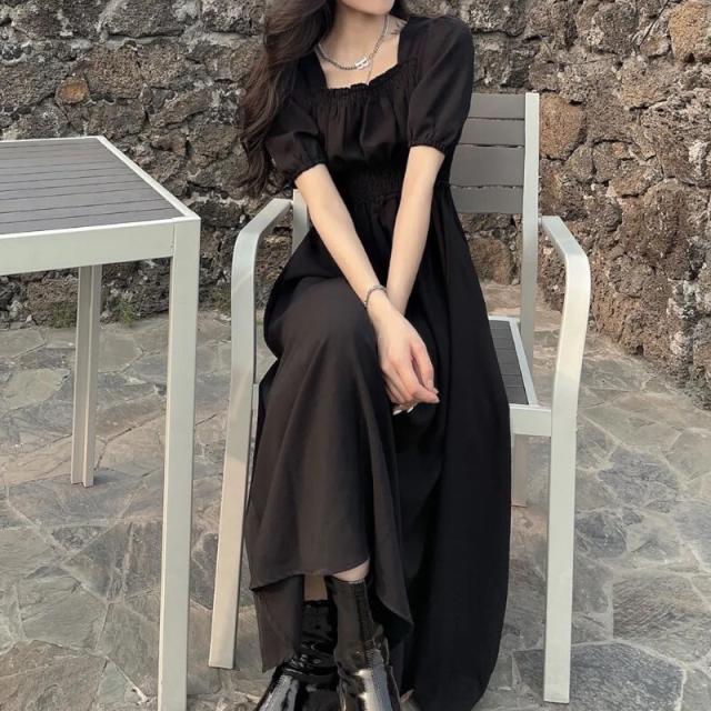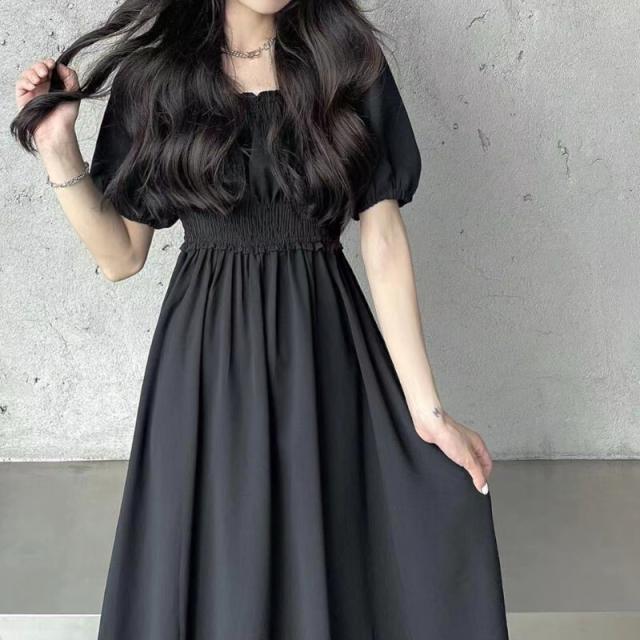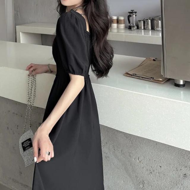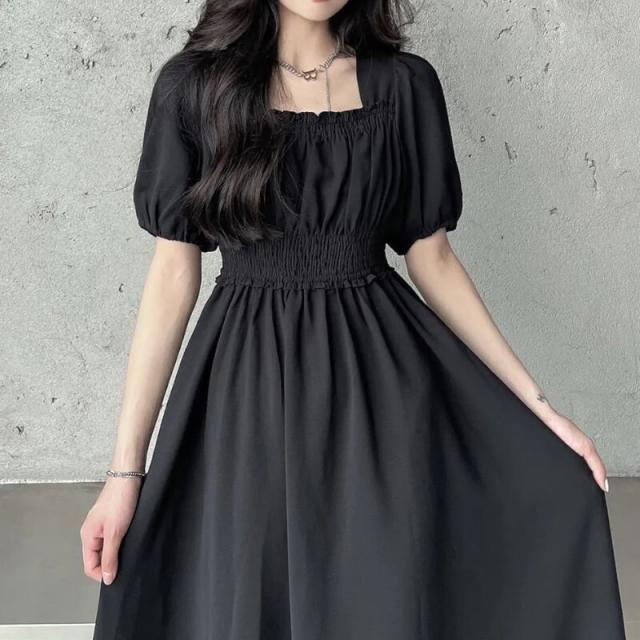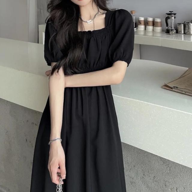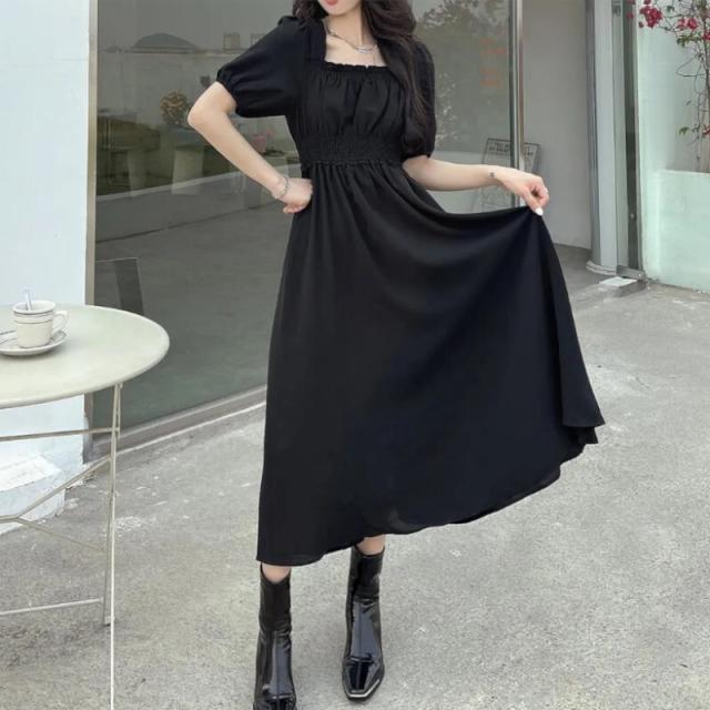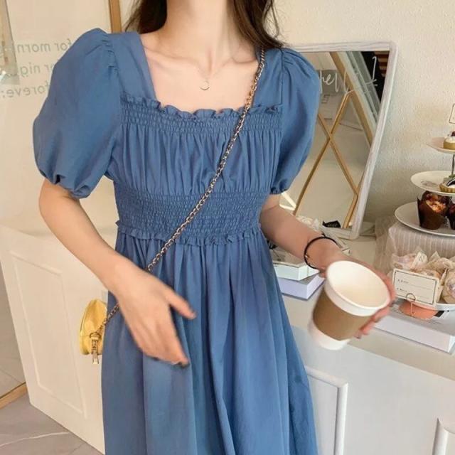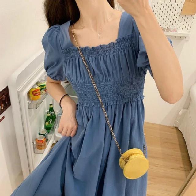 ワンピース ミドル丈 袖あり 半袖 スクエアネック Aライン ハイウエスト シャーリング かわいい 大人可愛い きれいめ シンプル カジュアル おしゃれ お洒落 レトロ こなれ感 ラブリー キュート エレガント とろみ感 抜け感 無地 春 夏 10代 20代 30代 40代 女性用 デート お出かけ 女子会 休日 リゾート 旅行 着回し 普段使い 韓国 韓国系 オルチャン ファッション コーデ スタイル 楽ちん モテ 体型カバー 美脚 脚長 定番 トレンド 流行 インスタ映え S M L ブラック ブル