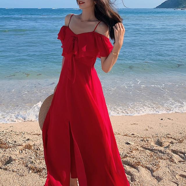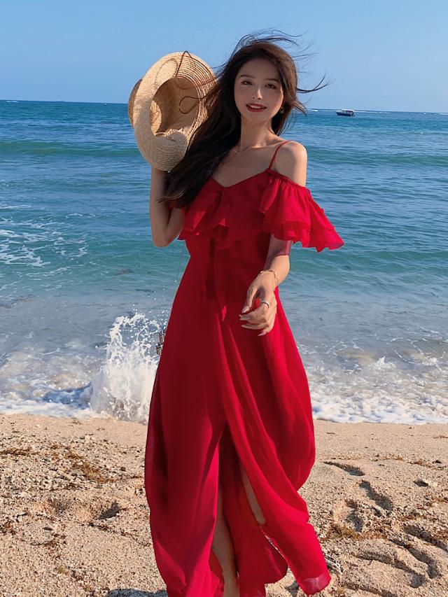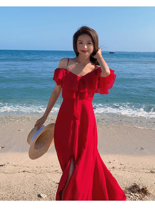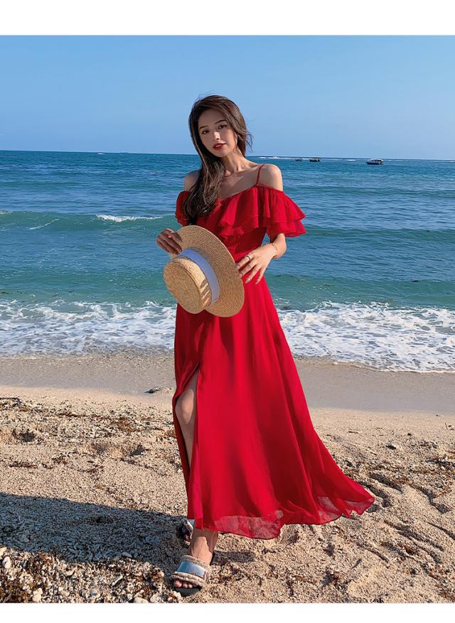 オフショル センタースリット フレア ワンピース フレアワンピース ロング ロング丈 マキシ マキシ丈 9分丈 アンクル丈 オフショルダー Aライン フリル スリット ハイウエスト かわいい 大人可愛い きれいめ シンプル カジュアル 大人 上品 おしゃれ 大人女子 こなれ感 ラブリー キュート ガーリー セクシー 抜け感 無地 夏 10代 20代 30代 40代 50代 デート お出かけ 休日 パーティー イベント リゾート 旅行 海 ホテル レストラン 普段使い 体系カバー 2色展開 レッド ホワイト