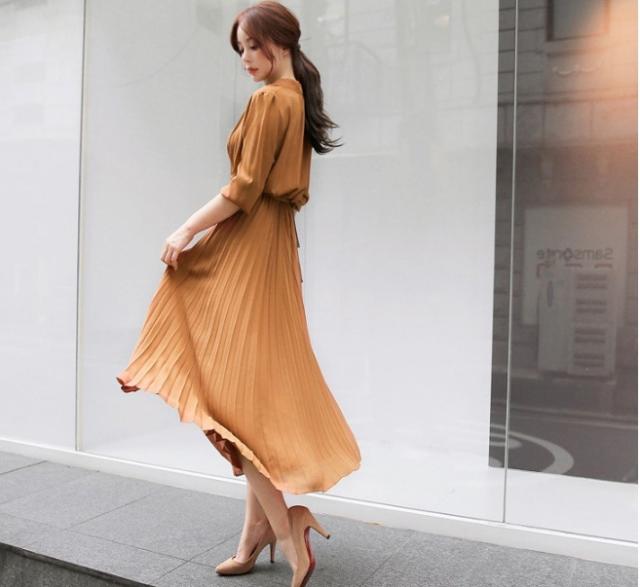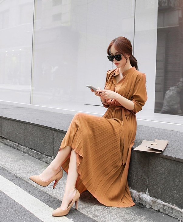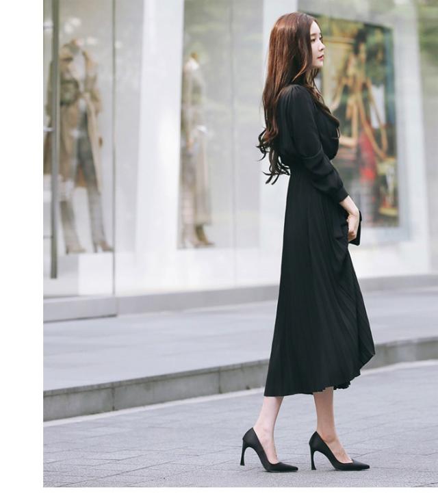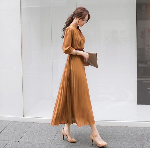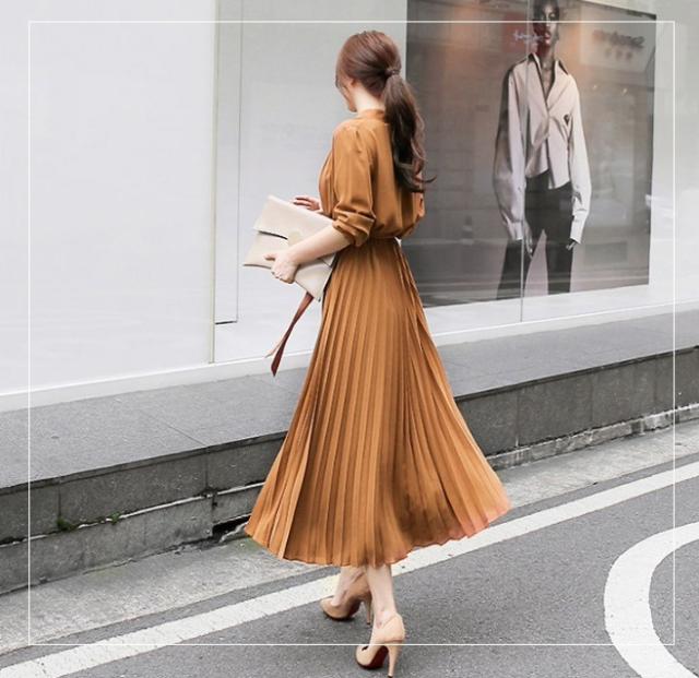 ハイネック プリーツ ロング ワンピース シャツワンピース フレアワンピース ロング ロング丈 長袖 スタンドカラー フレア 切り替えデザイン リボン ウエストリボン かわいい 大人可愛い きれいめ シンプル カジュアル 大人 上品 おしゃれ 大人女子 ラブリー キュート