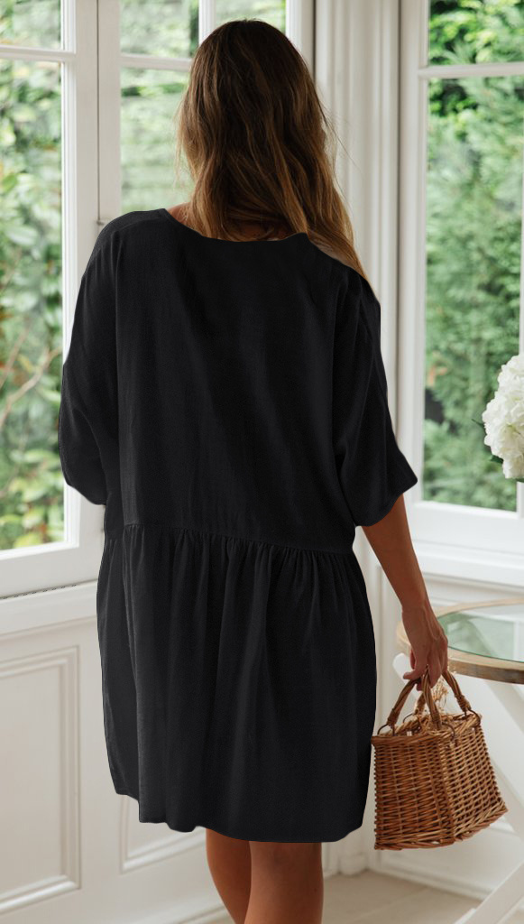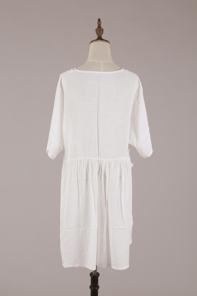 トップス ワンピース シャツ ブラウス 白シャツ ミニ ミニ丈 袖あり 5分袖 五分袖 襟なし 前開き かわいい きれいめ シンプル カジュアル 大人 上品 おしゃれ お洒落 大人可愛い 大人女子 こなれ感 ラフ メンズライク マニッシュ ボーイッシュ スポーティー 主役級 とろみ感