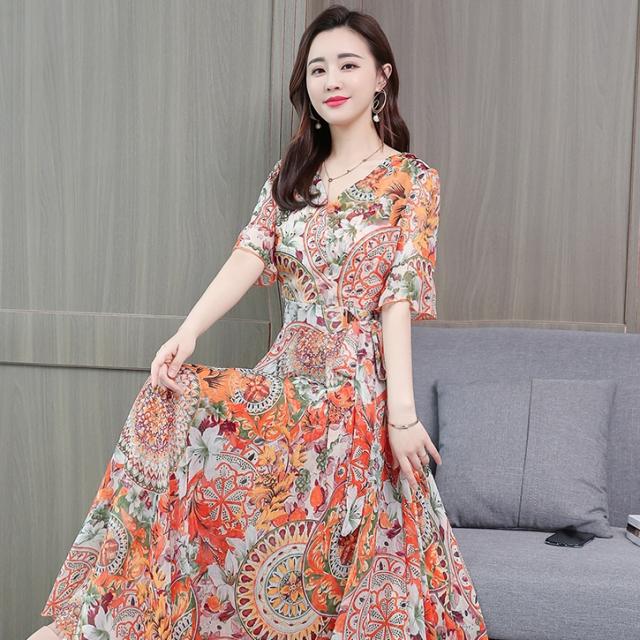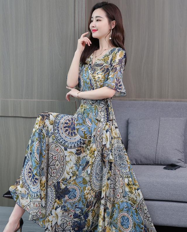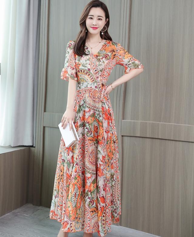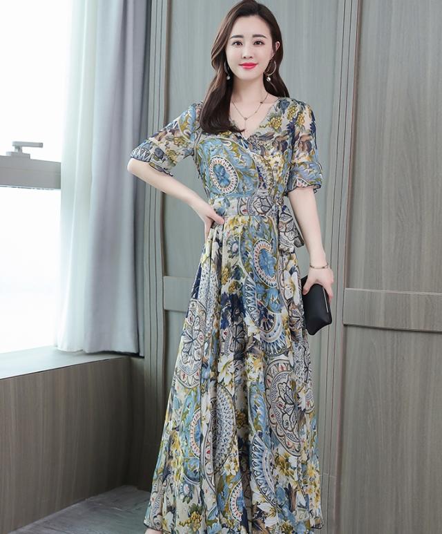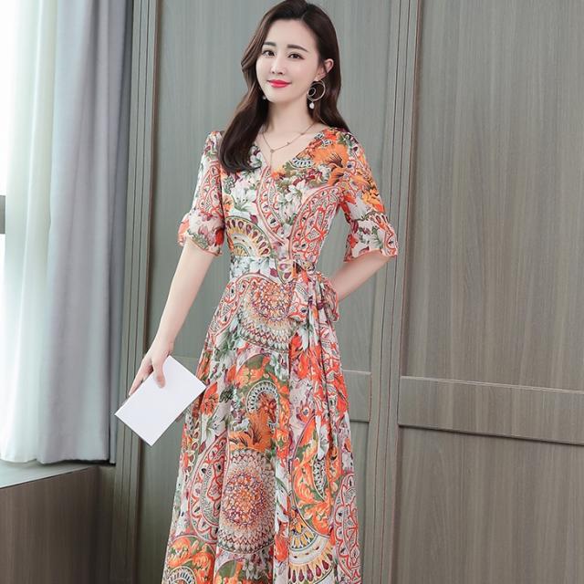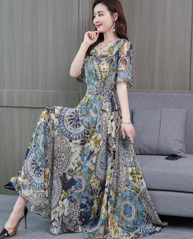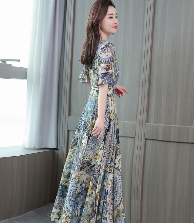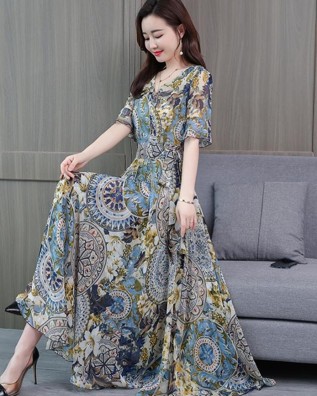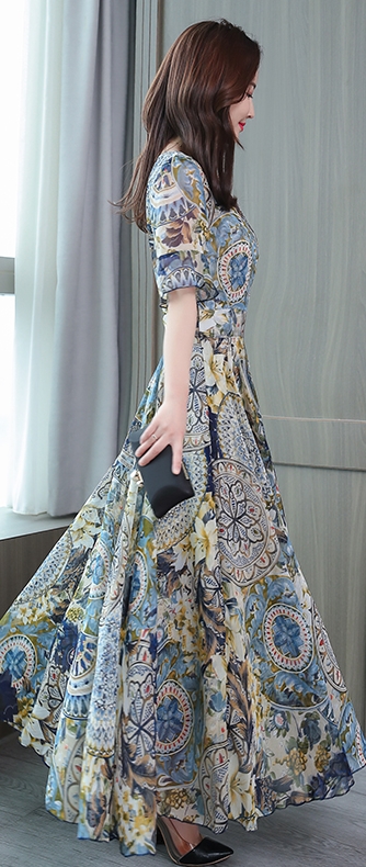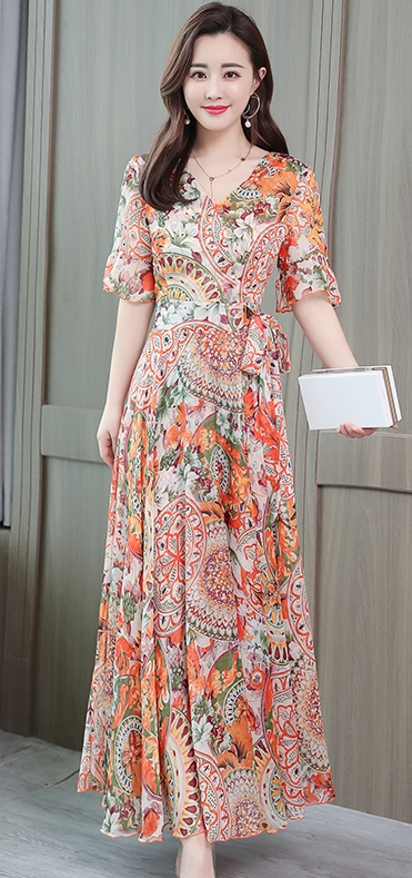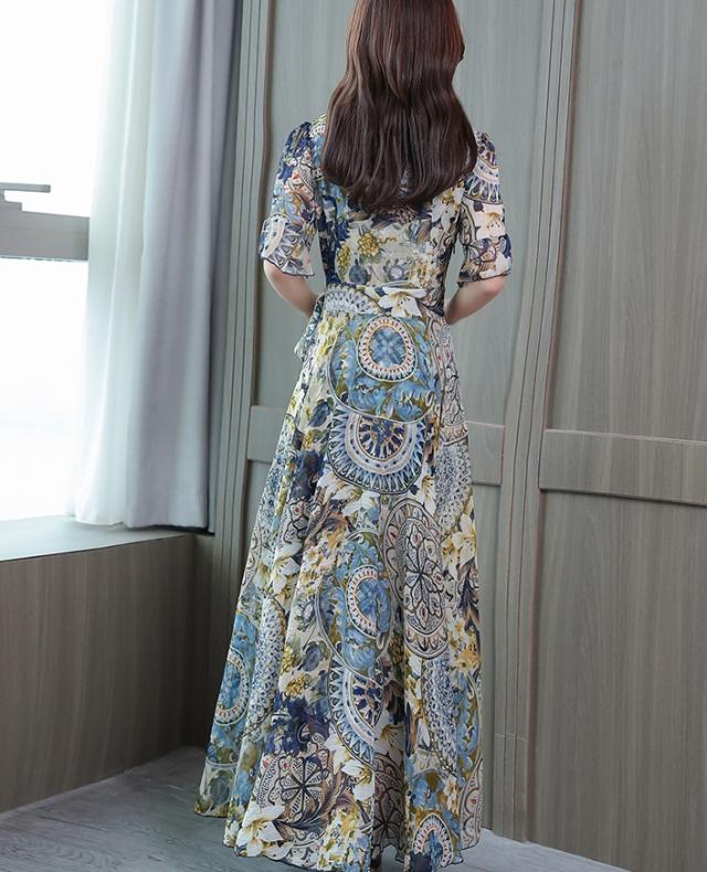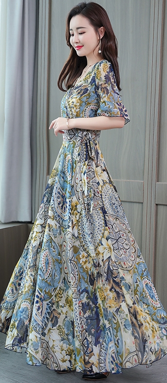 ドレス パーティードレス ロングドレス Aラインドレス ワンピースドレス 膝下 ロング丈 袖あり 半袖 カシュクール 襟なし Aライン シフォン ウエストリボン かわいい 大人可愛い きれいめ 上品 おしゃれ アジアン エスニック エキゾチック 大人女子 ラフ セクシー エレガント 存在感 フォーマル 華やか 柄 花柄 20代 30代 レディース 女性用 デート お出かけ 女子会 休日 パーティー イベント リゾート 旅行 夏 サイズ M L XL 2XL 3XL 4XL 色展開 ブルー オレンジ