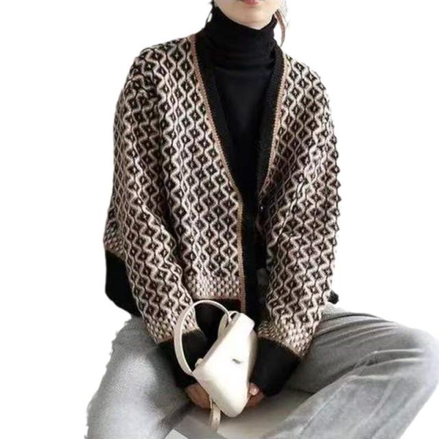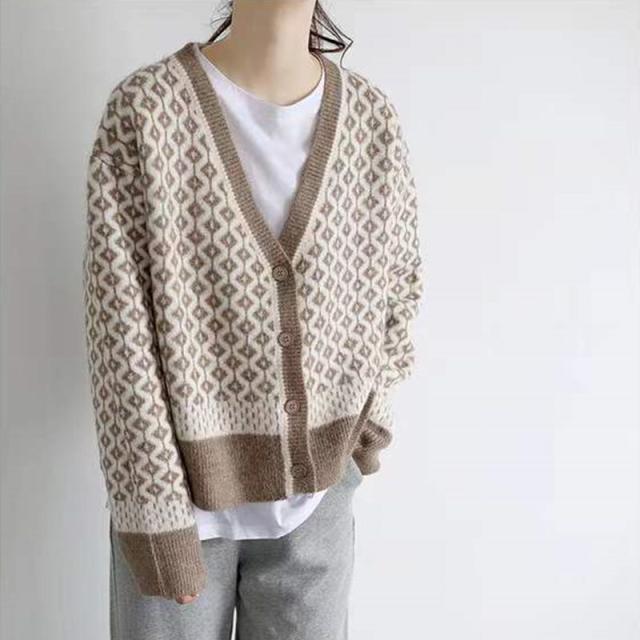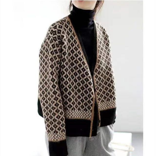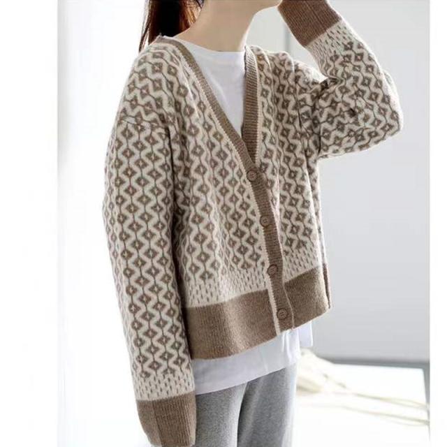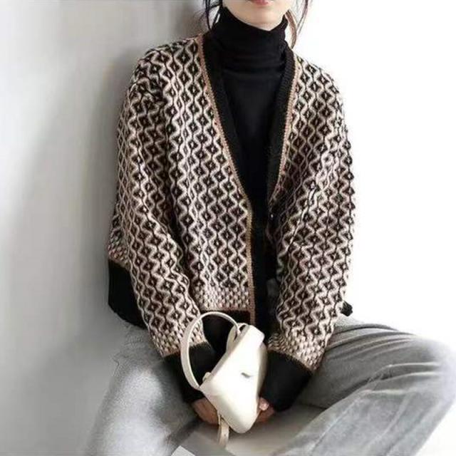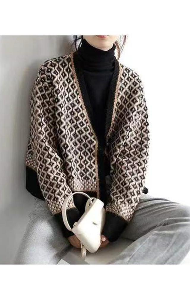 幾何学模様 ニット カーディガン トップス ショート ショート丈 袖あり 長袖 ボリューム袖 ドロップショルダー 萌袖 Vネック ワイド リブ 前開き リブニット 編み込み かわいい 大人可愛い きれいめ カジュアル 大人 上品 おしゃれ 大人女子 こなれ感 キュート 個性的 モード系 モダン 主役級 存在感 柄 秋 冬 10代 20代 30代 40代 50代 60代 通勤 通学 デート お出かけ 休日 着回し 普段使い 重ね着 暖かい 体系カバー S M L オーバーサイズ 2色展開 ベージュ ブラック