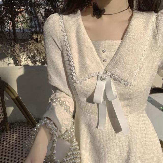 襟付き ツイード ロング ワンピース フレアワンピース ロング丈 袖あり パフスリーブ Vネック スクエアネック フレア レース フリル リボン ハイウエスト ラメ パール ボタン かわいい 大人可愛い きれいめ シンプル カジュアル 大人 上品 おしゃれ ラブリー キュート ガーリー フォーマル 秋 冬 入学式 入園式 結婚式 冠婚葬祭 10代 20代 30代 レディース 学生 通学 デート お出かけ 女子会 休日 レストラン 韓国系 ファッション スタイル トレンド 流行 インスタ映え 大きいサイズ