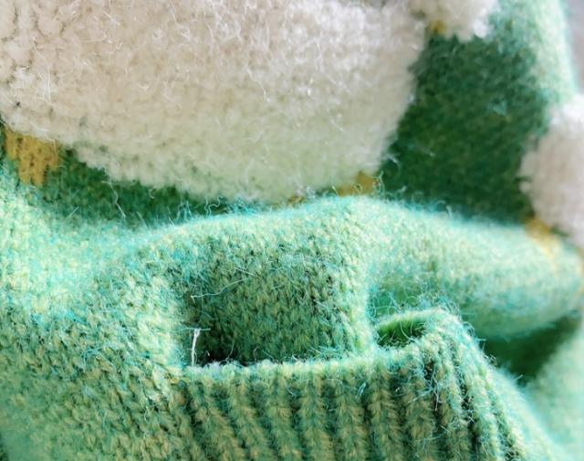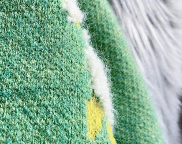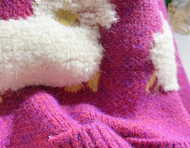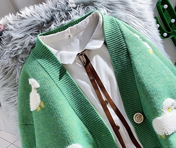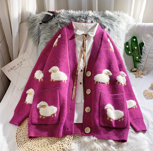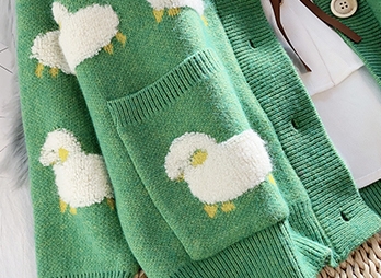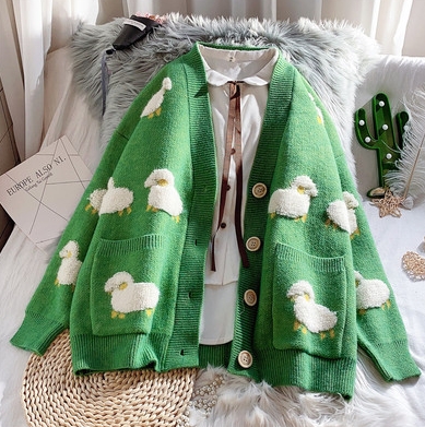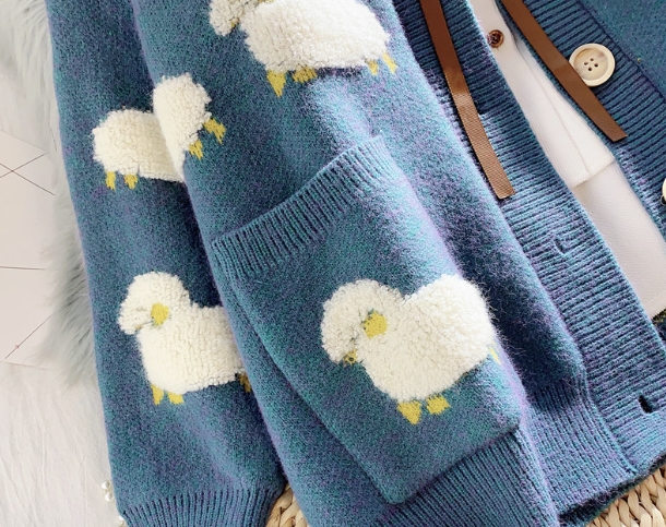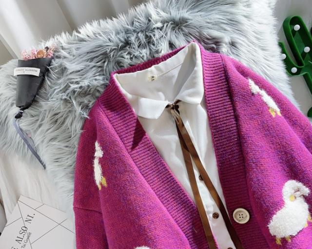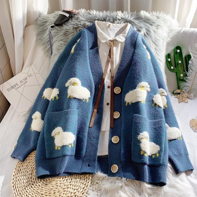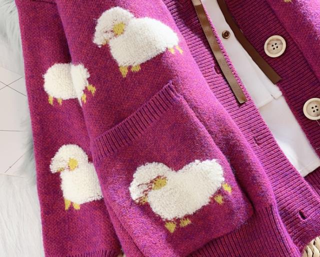 羊柄が可愛らしい、おしゃれなニットカーディガン。