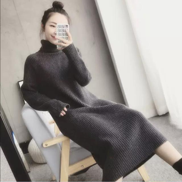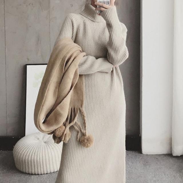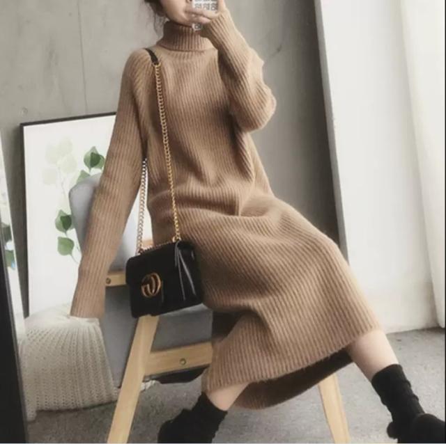ニットワンピース ハイネックワンピース ゆるワンピース タートルネックワンピース ワンピース ワンピドレス 膝下 ミモレ ミモレ丈 ロング ロング丈 7分丈 袖あり 長袖 ハイネック タートルネック ルーズ フレア ワイド ガウチョ ドロップショルダー リブニット 大人可愛い
