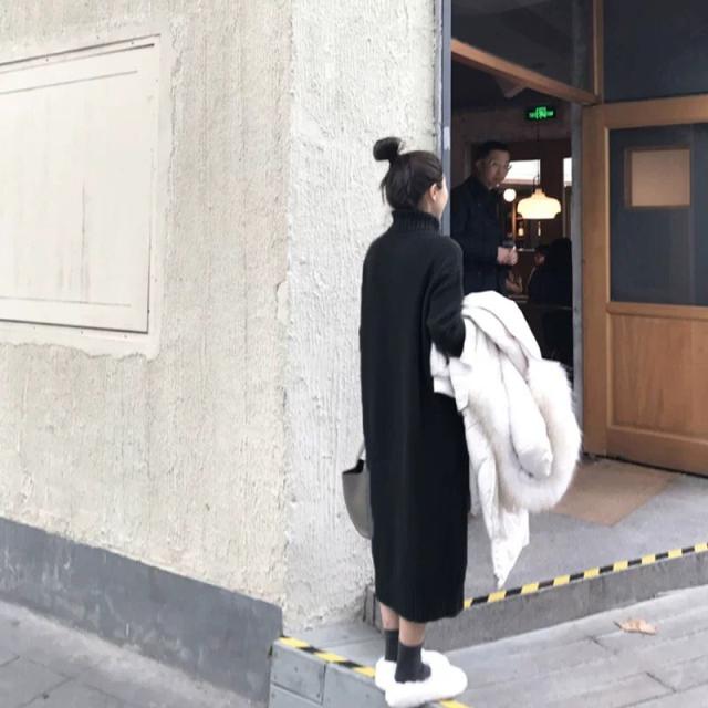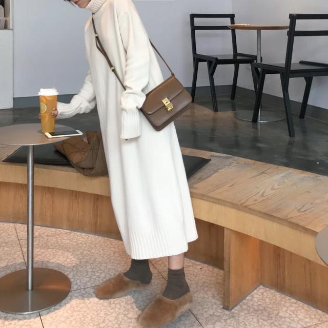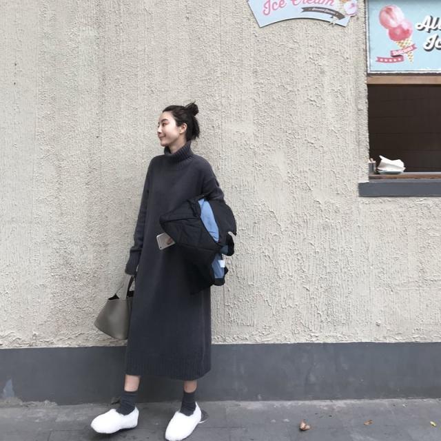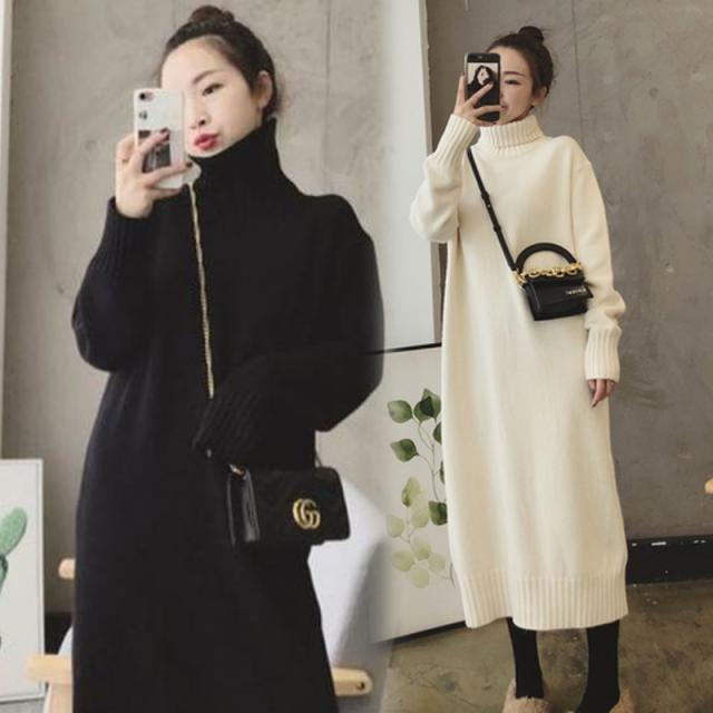 ハイネック ニット ロング ワンピース ニットワンピース ロング丈 長袖 ドロップショルダー 萌袖 タートルネック ストレート ワイド もこもこ モコモコ リブ かわいい 大人可愛い きれいめ シンプル カジュアル 大人 上品 おしゃれ 大人女子 こなれ感 ラフ ラブリー キュート