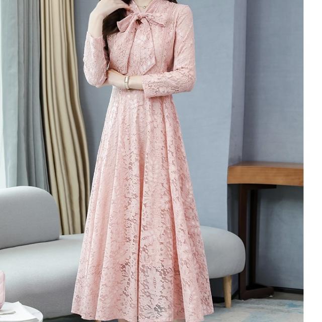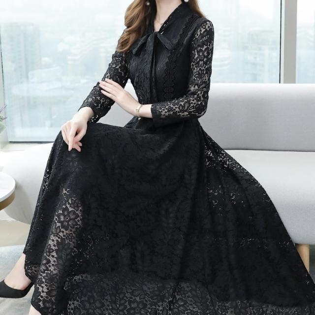 総レースデザインがエレガントで存在感のあるワンピースドレス。