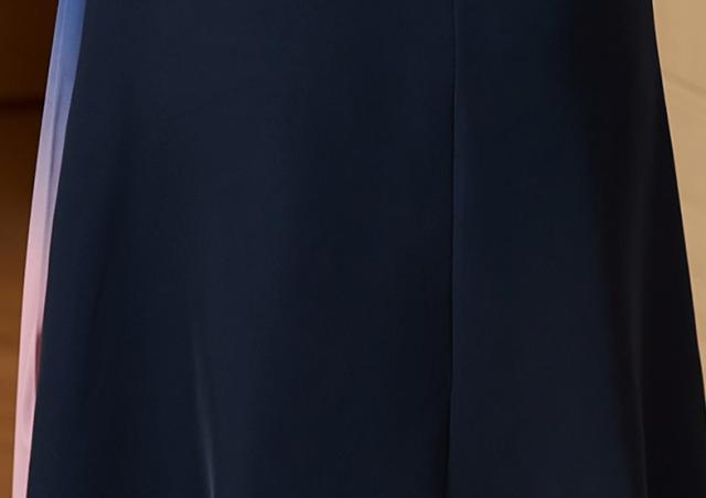 フレアシルエットが女性らしさを演出し、フォーマルカラーでエレガントなコーディネートに仕上がります。