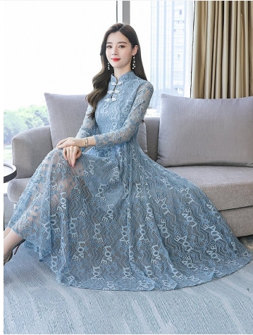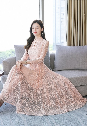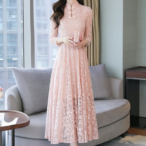 チャイナボタン レース フレア ドレス ワンピース パーティードレス パーティドレス 結婚式ドレス 結婚式のドレス ロング ロング丈 マキシ マキシ丈 袖あり 長袖 ハイネック マオカラー Aライン プリーツ 刺繍 シフォン ハイウエスト 透け感 シースルー かわいい 大人可愛い きれいめ 大人 上品 おしゃれ アジアン 大人女子 ラブリー キュート ガーリー エレガント フォーマル フォーマル 華やか お嬢様 清楚 チャイナ 花柄 10代 20代 30代 40代 ホテル レストラン 高見え 格上げ