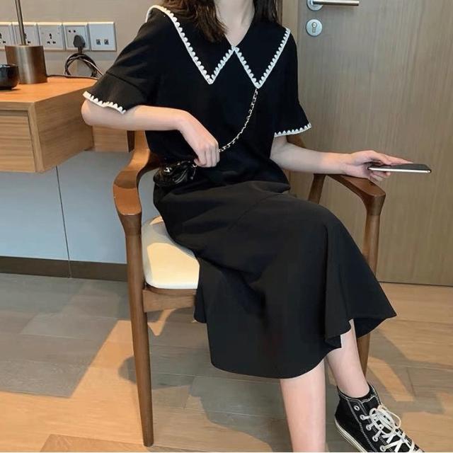 若見え 夏服 サマードレス スカート ワンピース マタニティウェア フレアスカート 膝丈 ひざ丈 ミドル丈 袖あり 半袖 襟付き ラペルネック Aライン 薄手 大人可愛い シンプル おしゃれ ラブリー キュート 無地 夏 誕生日 結婚式 二次会 20代 30代 40代 レディース ママ マタニティ ぽっちゃりさん デート お出かけ 女子会 休日 パーティー イベント 旅行 普段使い 韓国系 ファッション 楽ちん モテ 体系カバー ギフト L XL 2XL 3XL 4XL 大きいサイズ 大きめ ゆったり 黒
