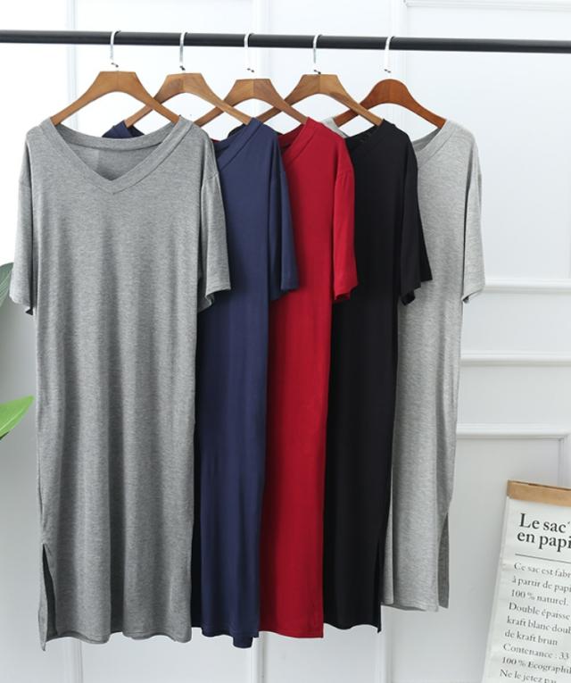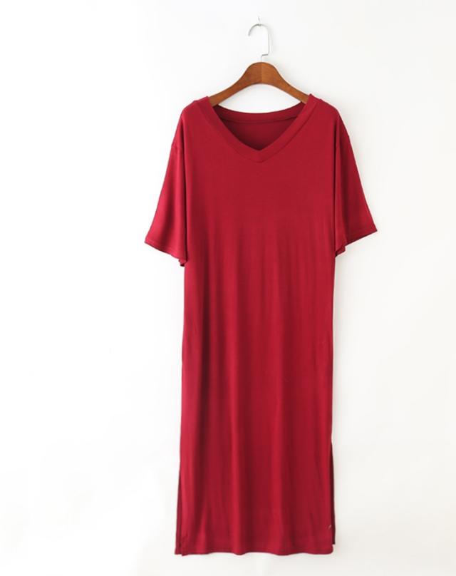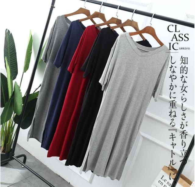 Tシャツワンピース ワンピース チュニック 部屋着 膝下 ミモレ ミモレ丈 ミディアム丈 袖あり 半袖 Vネック Iライン サイドスリット シンプル カジュアル おしゃれ お洒落 ラフ スポーティー 無地 春 夏 秋 シーズンレス 10代 20代 30代 40代 50代 60代 ママ マタニティ お泊まり 休日 運動 旅行 着回し 普段使い 重ね着 サイズ L XL 大きい 大きめ ビッグサイズ ゆったり ゆる 色展開 カラバリ 赤 レッド ローズレッド 灰色 グレー ライトグレー 紺色 ネイビー
