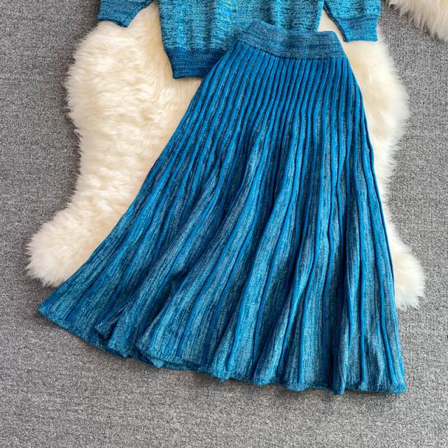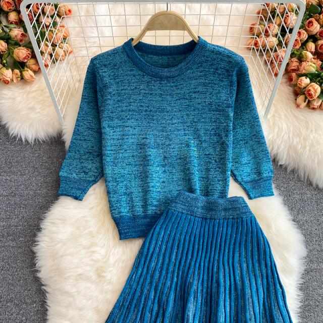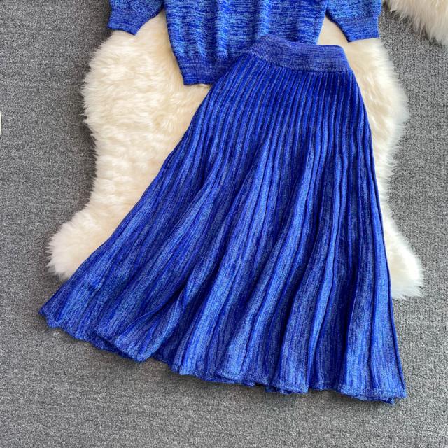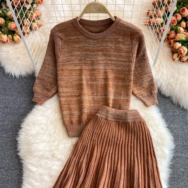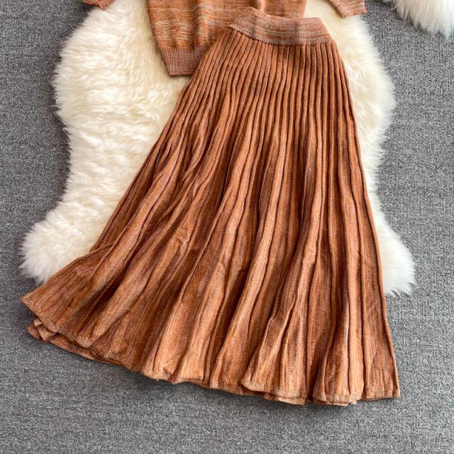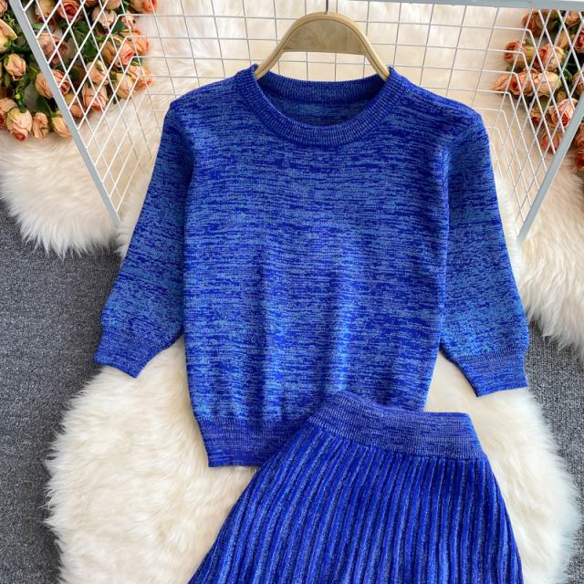 セットアップニット ツーピースニット トップス スカート ニットソー ニット フレアスカート ニットスカート 膝丈 ひざ丈 膝下 ミモレ ミモレ丈 ミディアム丈 ミドル丈 袖あり 5分袖 五分袖 セットインスリーブ Uネック ラウンドネック フレア セミフレア ストレート ニット