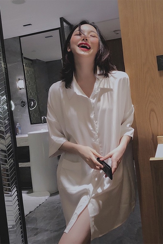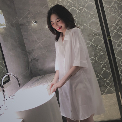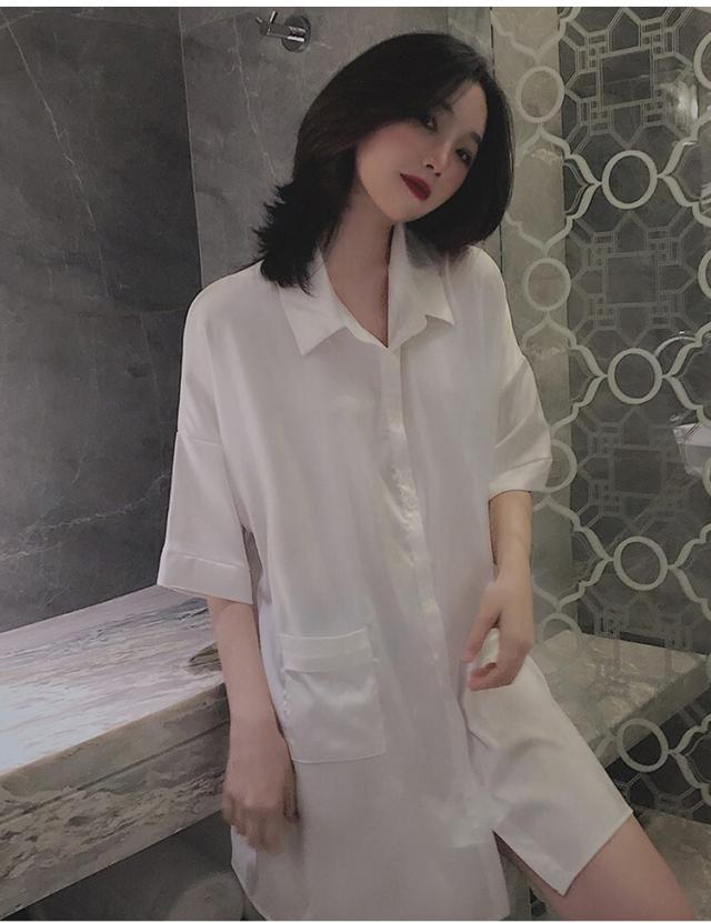 オーバーサイズシャツ シャツワンピース トップス ワンピース ルームウェア パジャマ シャツ ブラウス 部屋着 寝巻き ナイトウェア 白シャツ ボーイフレンドスタイル ミニ ミニ丈 ショート ショート丈 膝上 袖あり 5分袖 五分袖 ドロップショルダー 襟付き ルーズ 角襟 前開き