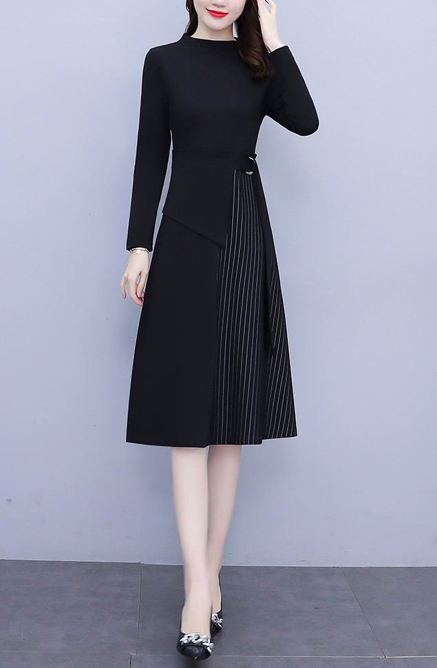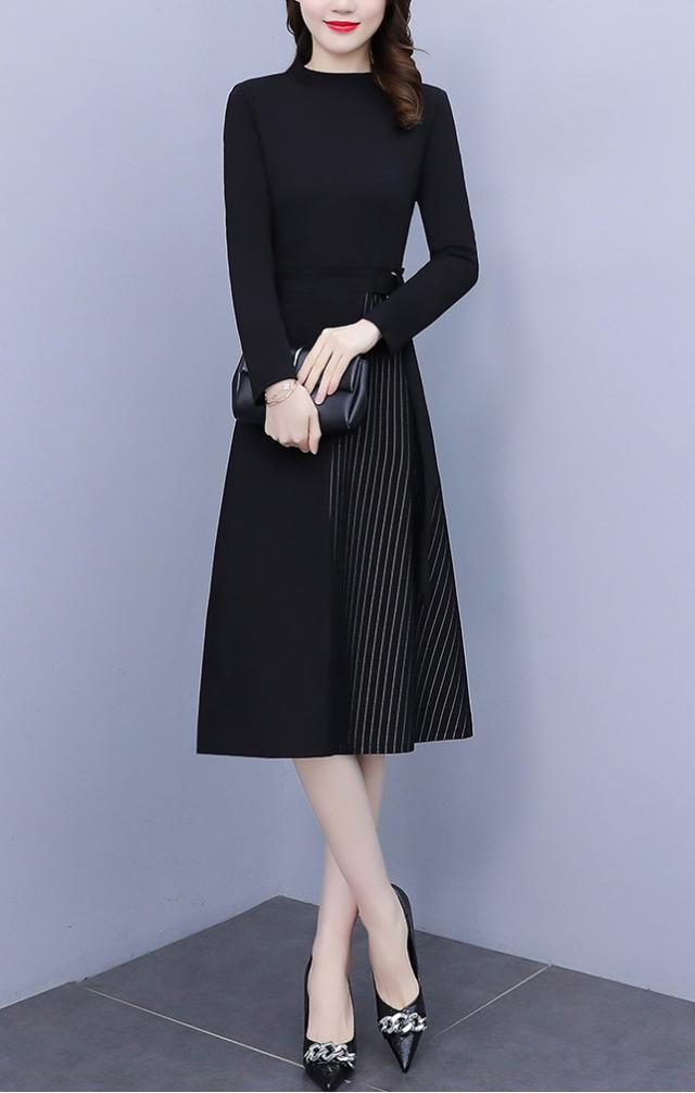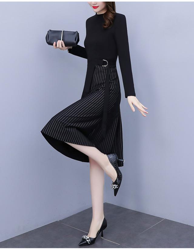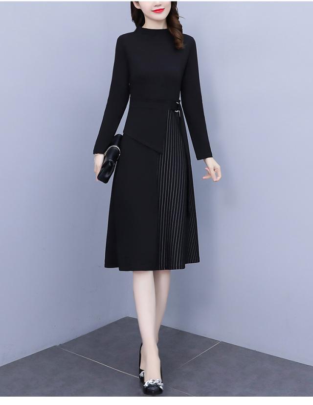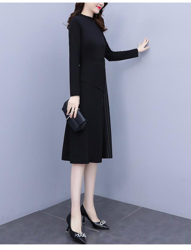 異素材ミックス 裾切り替え ロング ワンピース フレアワンピース 膝下 ロング丈 袖あり 長袖 スタンドカラー ハイネック セミフレア ウエストマーク 切り替えデザイン ドッキング バックシャン バックコンシャス かわいい 大人可愛い きれいめ 大人 上品 おしゃれ こなれ感 個性的 モード系 エレガント フォーマル 無地 ストライプ 入学式 入園式 卒業式 卒園式 謝恩会 結婚式 10代 20代 30代 40代 50代 60代 オフィス ビジネス OL 通勤 デート お出かけ パーティー 大きいサイズ