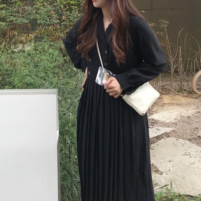 セットアップ風 プリーツ ロング ワンピース フレアワンピース 膝下 ロング丈 袖あり 長袖 Vネック 襟付き フレア Aライン 切り替えデザイン ドッキング かわいい きれいめ シンプル カジュアル 上品 おしゃれ こなれ感 ラフ ラブリー キュート モード系 エレガント フォーマル 無地 春 秋 10代 20代 30代 レディース 学生 通学 デート お出かけ 休日 着回し 普段使い オルチャン ファッション スタイル 体系カバー トレンド 流行 インスタ映え M L XL 2XL 3XL 4XL