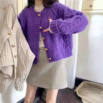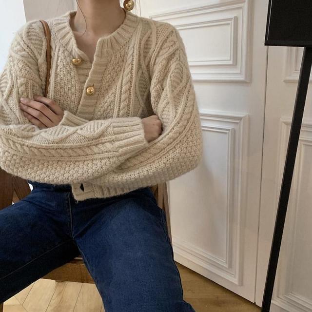 ケーブニット カーディガン トップス ショート ショート丈 袖あり 長袖 ボリューム袖 萌袖 Uネック 襟なし ワイド もこもこ モコモコ 前開き 編み込み ニット かわいい 大人可愛い きれいめ シンプル カジュアル 大人 上品 おしゃれ 大人女子 ラフ ラブリー キュート ルーズ モード系 モダン 無地 秋 冬 10代 20代 30代 40代 50代 60代 オフィス OL 学生 通学 デート お出かけ 女子会 休日 着回し 普段使い 楽ちん モテ トレンド 流行 インスタ映え フリーサイズ