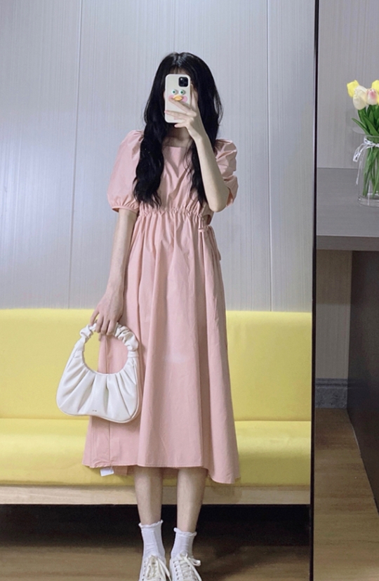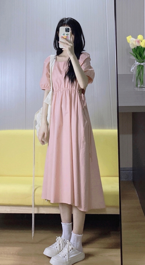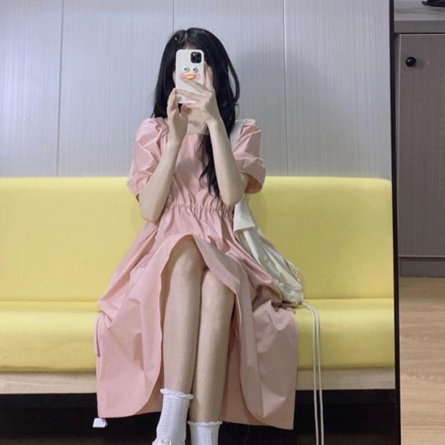 ワンピース ワンピドレス 膝下 ロング ロング丈 袖あり 半袖 パフスリーブ スクエアネック 襟なし Aライン ウエストリボン ポケット ハイウエスト ウエスト開き 綿 かわいい 大人可愛い シンプル 大人 おしゃれ お洒落 アジアン エスニック ラフ ラブリー キュート セクシー 無地 夏 10代 20代 レディース 女性用 デート お出かけ 公園デビュー 女子会 休日 イベント リゾート 旅行 海 ホテル ガーデン レストラン 普段使い 楽ちん モテ サイズ M L XL 2XL 色展開 ピンク