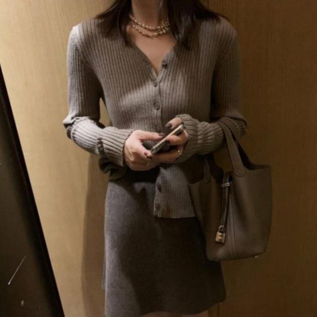 落ち着いたカラーのカーディガン