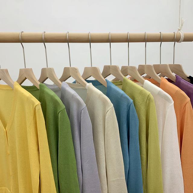 涼やかな素材感を定番シルエで仕上げたVネックサマーニットカーディガン。