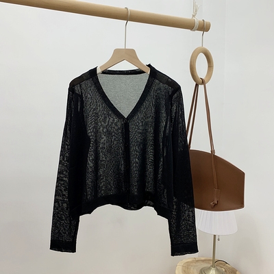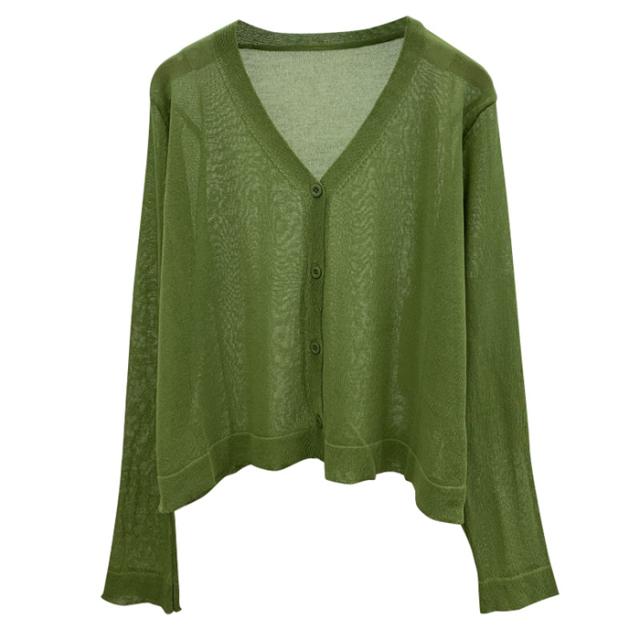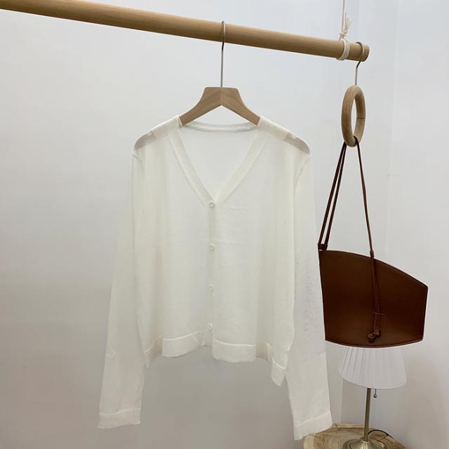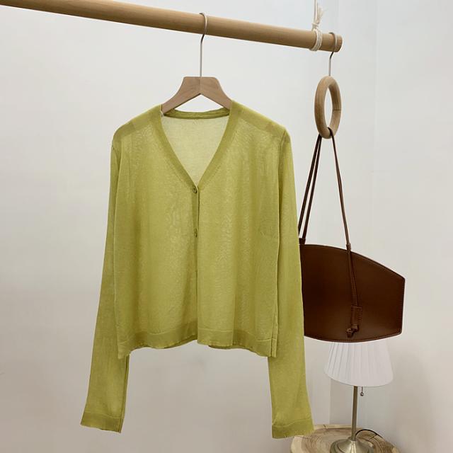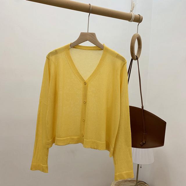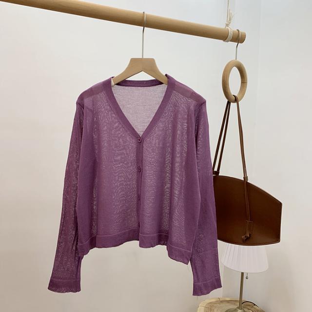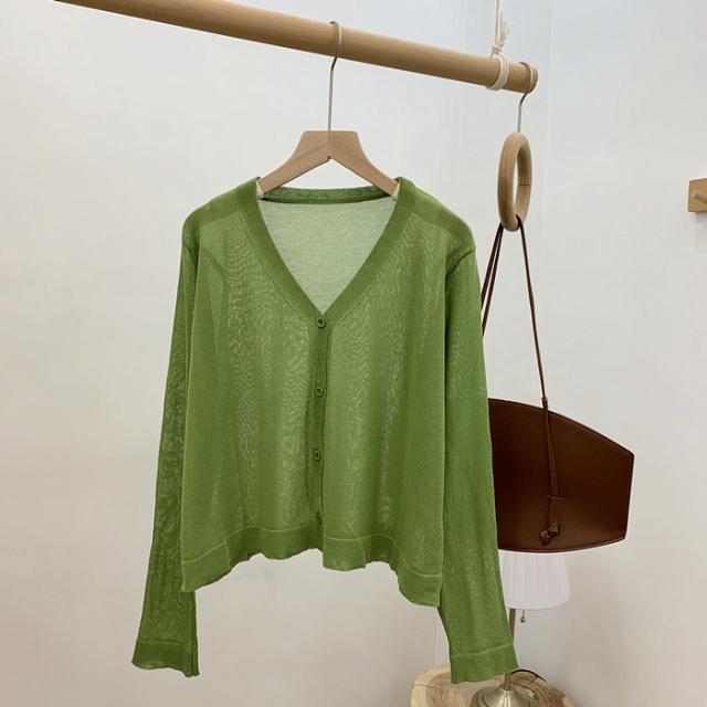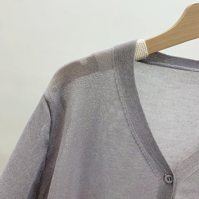 Vネック サマーニット カーディガン トップス アウター ショート ショート丈 袖あり 長袖 前開き 編み込み 透け感 かわいい 大人可愛い きれいめ シンプル カジュアル 大人 上品 おしゃれ 大人女子 こなれ感 ラブリー モード系 モダン 抜け感 無地 春 夏 10代 20代 30代 40代