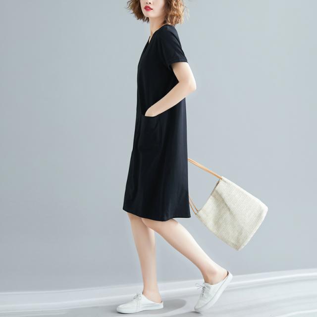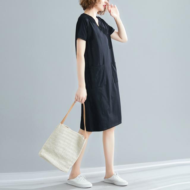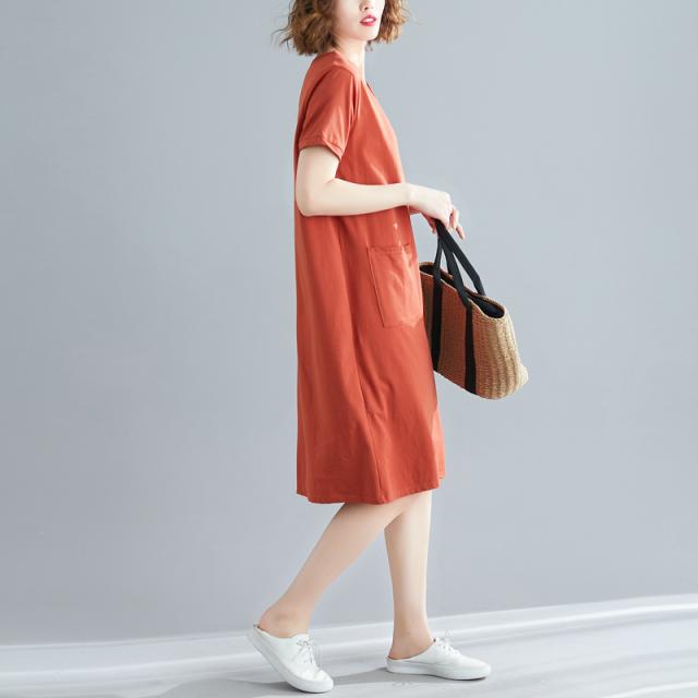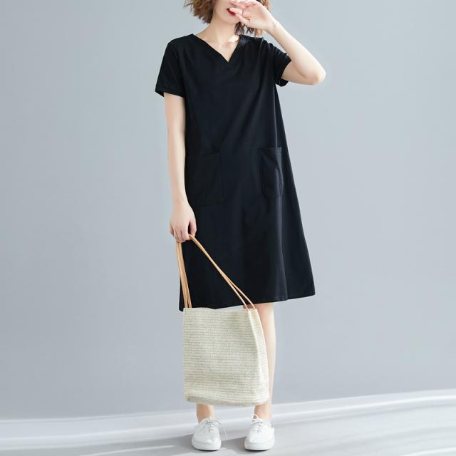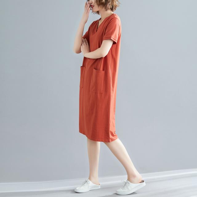 Vネック 膝丈 ワンピース Tシャツワンピ ひざ丈 袖あり 半袖 襟なし ストレート ワイド Iライン ポケット かわいい 大人可愛い きれいめ シンプル カジュアル 大人 上品 おしゃれ 大人女子 ラフ ラブリー キュート ルーズ 抜け感 無地 夏 10代 20代 30代 40代 50代 60代 レディース 学生 通学 デート お出かけ 休日 着回し 普段使い 重ね着 オルチャン ファッション コーデ 楽ちん XL 2XL 3XL 4XL 大きいサイズ ビッグサイズ ブラック オレンジ ネイビー