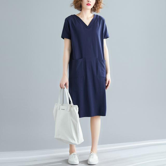 Vネック 膝丈 ワンピース Tシャツワンピ ひざ丈 袖あり 半袖 襟なし ストレート ワイド Iライン ポケット かわいい 大人可愛い きれいめ シンプル カジュアル 大人 上品 おしゃれ 大人女子 ラフ ラブリー キュート ルーズ 抜け感 無地 夏 10代 20代 30代 40代 50代 60代