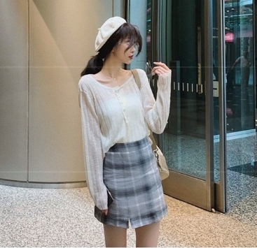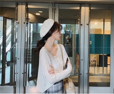 透け感のある糸を使用し、体型を華奢に見せてくれるシルエットにこだわった1枚です。
