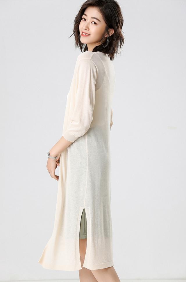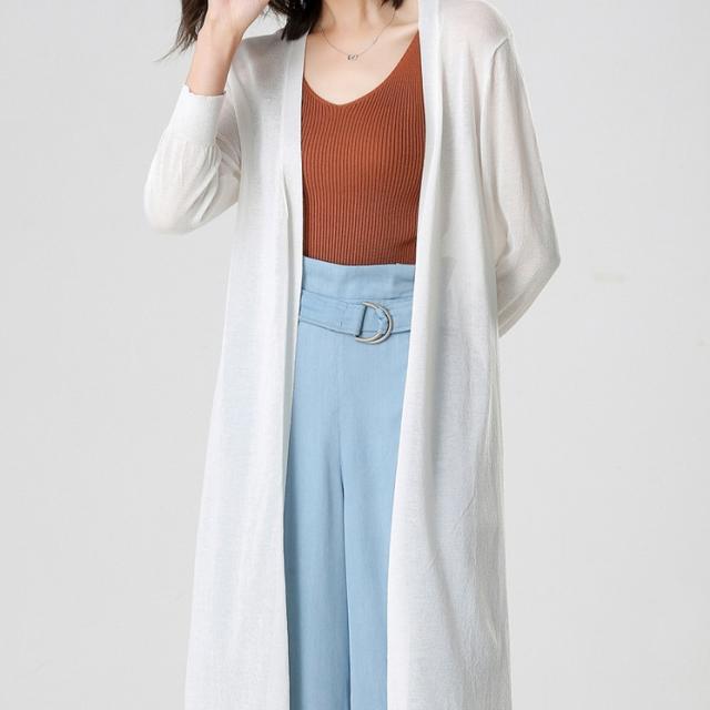 ロング丈 シアー サマーニットソー カーディガン トップス アウター 膝下 ロング 袖あり 7分袖 七分袖 長袖 襟なし Iライン サイドスリット 前開き 編み込み 透け感 トッパー サマーニット かわいい 大人可愛い きれいめ シンプル カジュアル 大人 上品 おしゃれ 大人女子 こなれ感 ラフ モード系 エレガント とろみ感 抜け感 無地 春 夏 10代 20代 30代 40代 50代 60代 オフィス ビジネス OL 通勤 学生 通学 デート お出かけ 休日 着回し 普段使い 冷房対策 日焼け対策