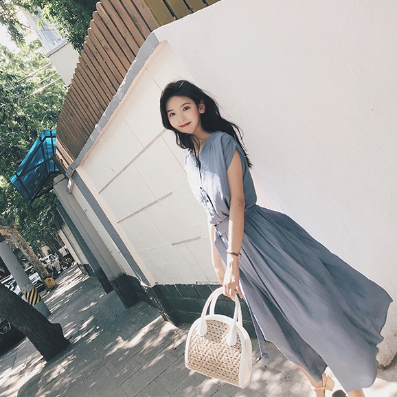 ワンピース ワンピドレス ロング ロング丈 袖なし ノースリーブ ラウンドネック 襟なし スタンドカラー Aライン シフォン ベルト スリット ハイウエスト ポリエステル ニット かわいい 大人可愛い きれいめ シンプル 大人 上品 おしゃれ お洒落 アジアン エスニック