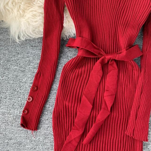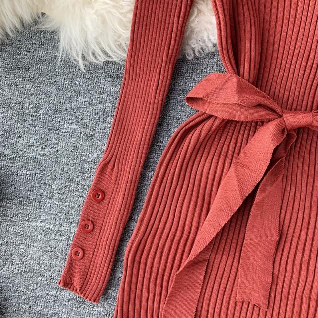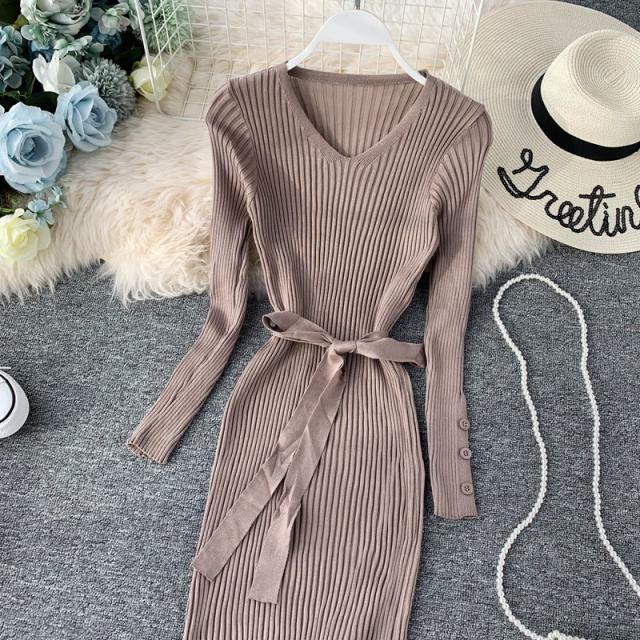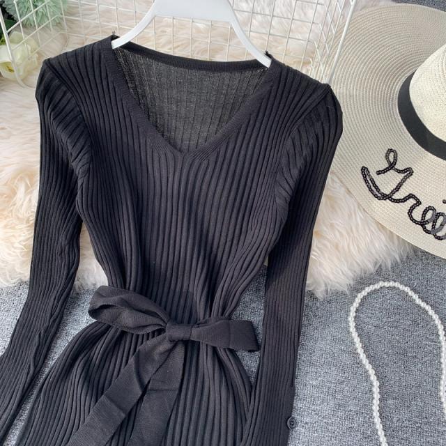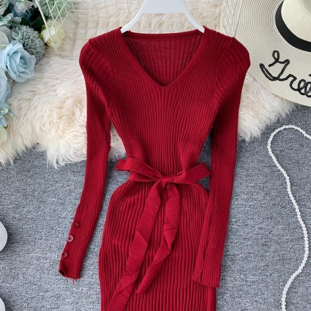 ドレス パーティードレス 二次会ドレス フォーマルドレス ワンピースドレス ロング ロング丈 袖あり 長袖 Vネック 襟なし Iライン スレンダー リボン ウエストリボン スリット サイドスリット ハイウエスト かわいい 大人可愛い きれいめ シンプル 上品 おしゃれ アジアン