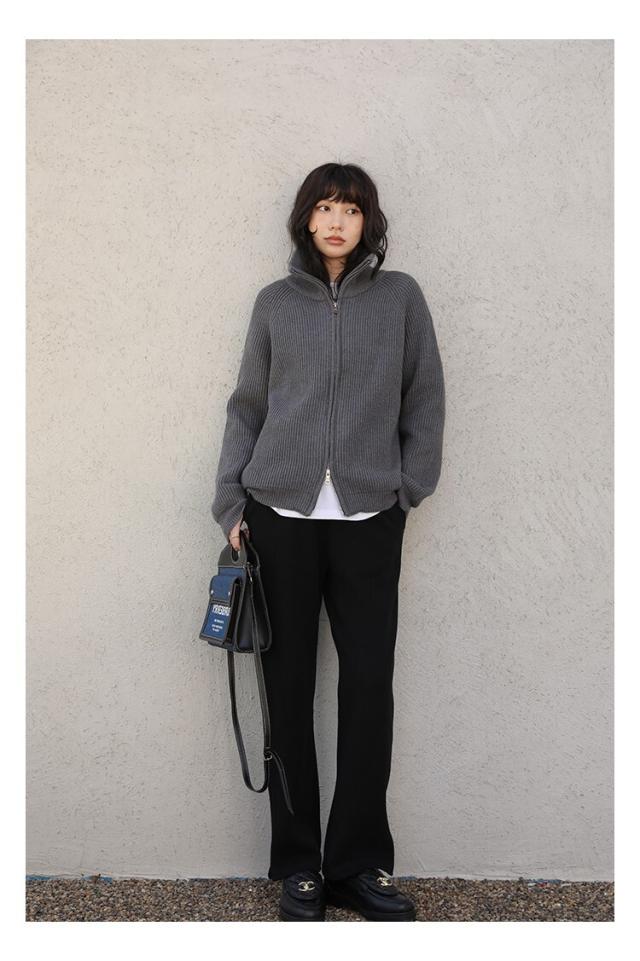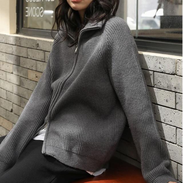 ジップアップ リブニット トップス ブルゾン ショート ショート丈 袖あり 長袖 萌袖 ハイネック リブ 前開き 編み込み Wジッパー ダブルジッパー ニット かわいい 大人可愛い きれいめ シンプル カジュアル 大人 上品 おしゃれ 大人女子 こなれ感 クール モード系 存在感 抜け感 無地 秋 冬 10代 20代 30代 40代 50代 60代 OL 通勤 学生 通学 デート お出かけ 休日 着回し 普段使い 重ね着 楽ちん モテ トレンド 流行 インスタ映え S M L XL ゆったり サイズ