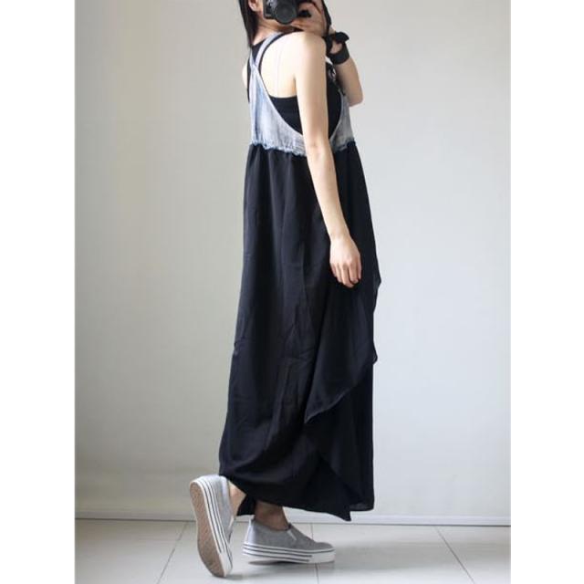 ワンピース サロペット フレアワンピース デニムワンピース ロング ロング丈 袖なし ノースリーブ 襟なし フレア セミフレア Aライン 切り替えデザイン ドッキング デニム ブルーデニム かわいい 大人可愛い カジュアル 大人 おしゃれ かっこいい 大人女子 こなれ感 ラフ 個性的 クール モード系 エレガント モダン オールシーズン レディース デート お出かけ 女子会 休日 着回し 普段使い 重ね着 韓国 オルチャン ファッション スタイル 楽ちん モテ 体系カバー トレンド インスタ映え ゆる