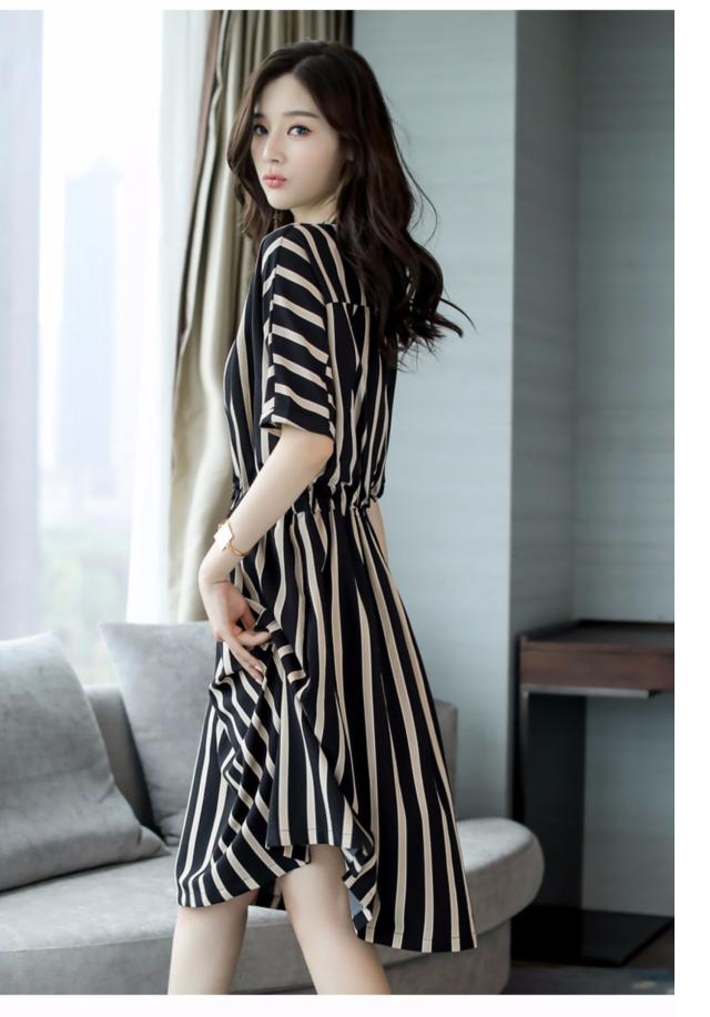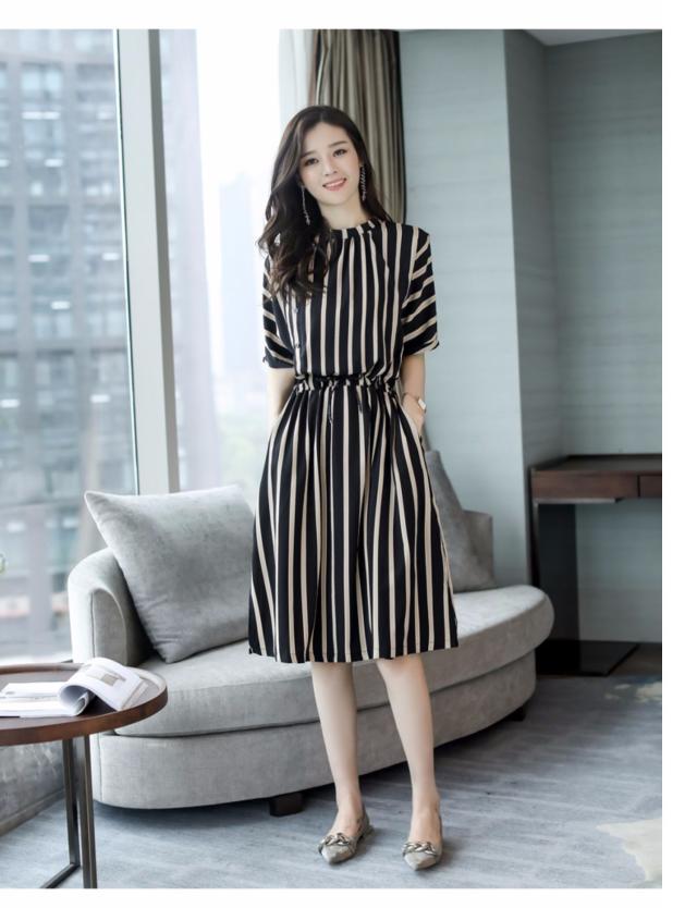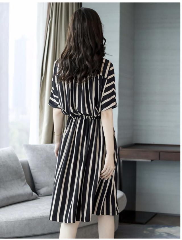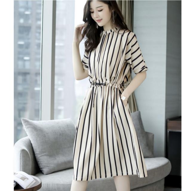 ワンピース シャツワンピース フレアワンピース 膝丈 ひざ丈 袖あり 半袖 フレアスリーブ Uネック ラウンドネック 襟なし フレア セミフレア Aライン かわいい 大人可愛い きれいめ シンプル カジュアル 大人 おしゃれ かっこいい 大人女子 こなれ感 個性的 クール モード系 エレガント モダン ストライプ オールシーズン 10代 20代 レディース デート お出かけ 女子会 休日 着回し 普段使い 重ね着 韓国 オルチャン ファッション スタイル 楽ちん モテ 体系カバー トレンド インスタ映え