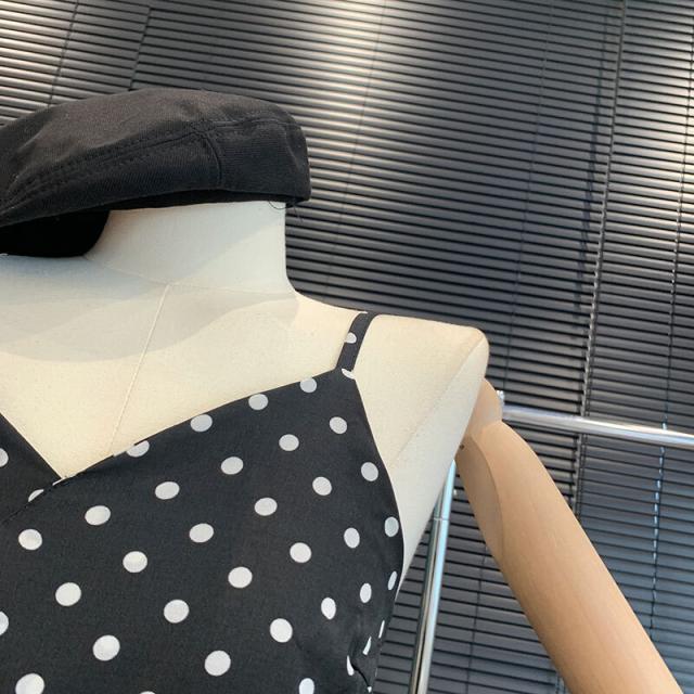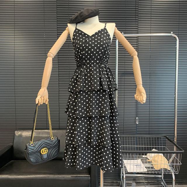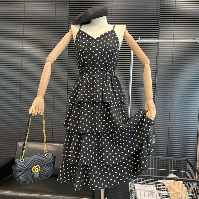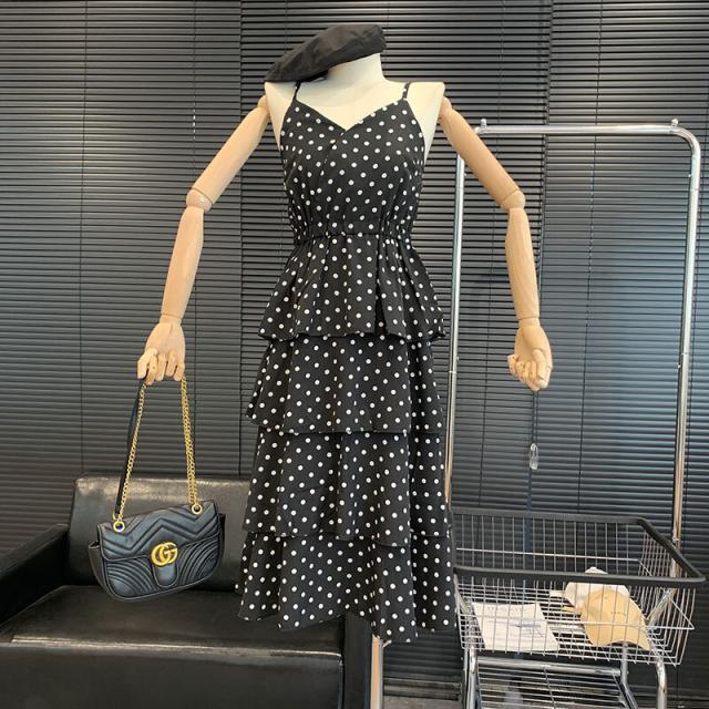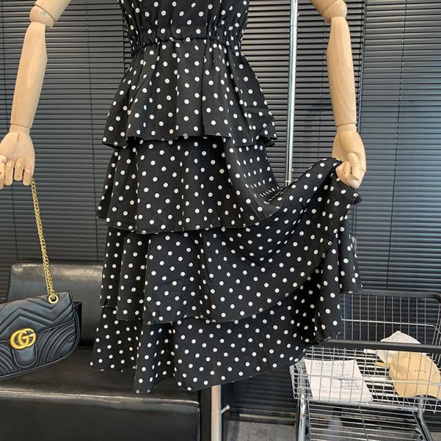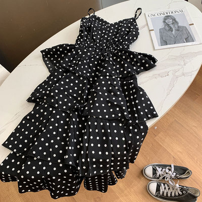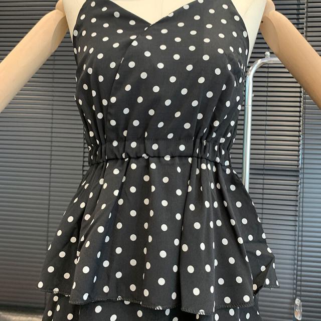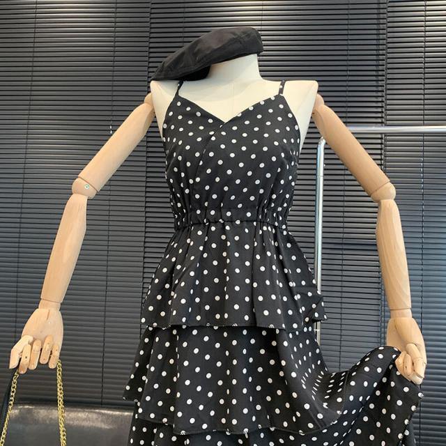 キャミワンピース ドット柄 ワンピース キャミソール ティアードワンピース フェアリースカート 膝丈 ひざ丈 ノースリーブ カシュクール ペプラム フリル ウエストマーク ふわふわ ウエストゴム かわいい おしゃれ お洒落 レトロ ラブリー キュート ドット柄 水玉 夏 10代 20代 30代 レディース ママ マタニティ 学生 通学 デート お出かけ 女子会 お泊まり 休日 パーティー イベント リゾート 旅行 海 プール 着回し 重ね着 コーデ モテ トレンド フリーサイズ 黒 ブラック モノトーン