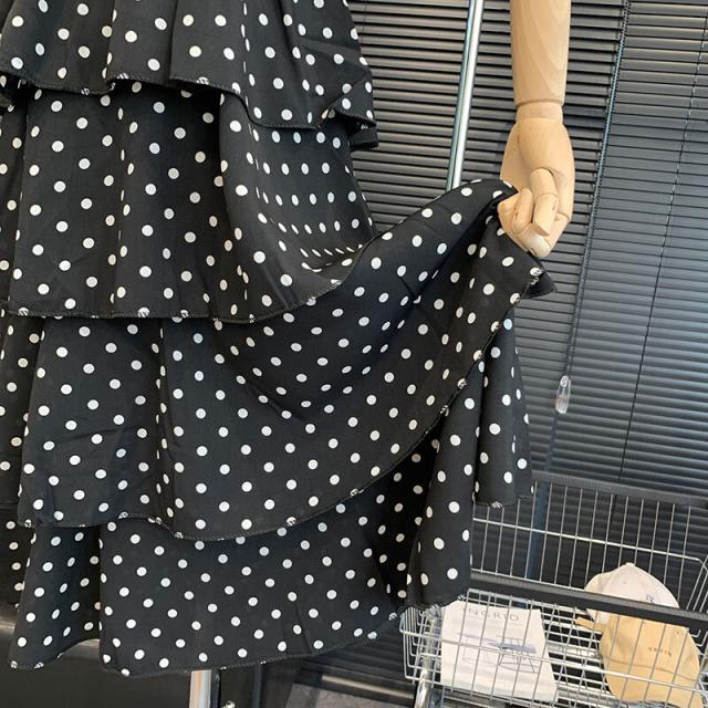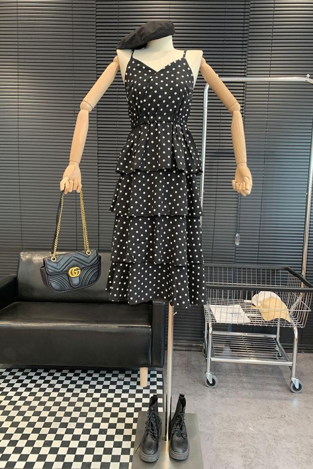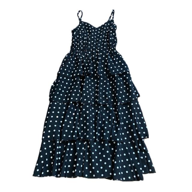 ドット柄とティアードデザインが可愛いワンピース。
