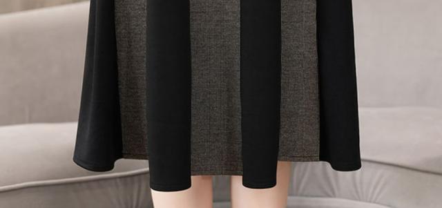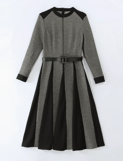 ニットワンピース バイカラー ボックスプリーツ ワンピース セーター プリーツスカート ワンピドレス 膝丈 ひざ丈 膝下 袖あり 長袖 クルーネック 襟なし プリーツ ベルト ウエストマーク ニット きれいめ 大人 上品 おしゃれ お洒落 大人女子 モード系 格子柄 千鳥格子 春 秋