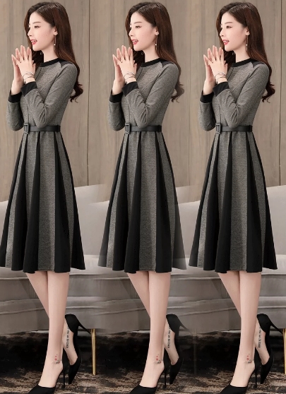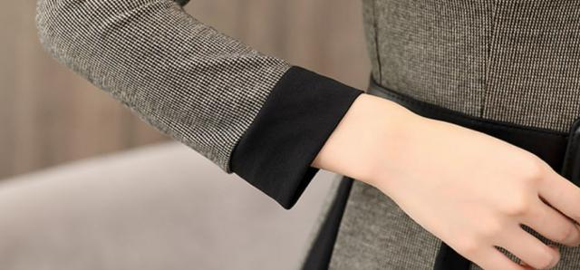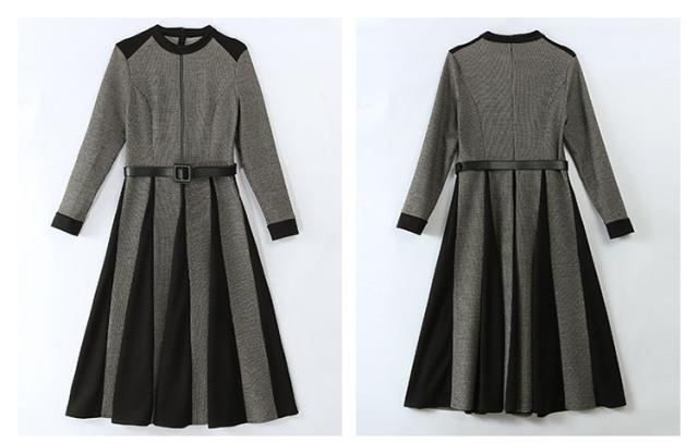 ニットワンピース バイカラー ボックスプリーツ ワンピース セーター プリーツスカート ワンピドレス 膝丈 ひざ丈 膝下 袖あり 長袖 クルーネック 襟なし プリーツ ベルト ウエストマーク ニット きれいめ 大人 上品 おしゃれ お洒落 大人女子 モード系 格子柄 千鳥格子 春 秋 謝恩会 参観日 20代 30代 40代 ママ OL 通勤 学生 通学 デート お出かけ 女子会 休日 イベント ホテル レストラン コーデ サイズ M L XL 2XL 色展開 ブラウン グレー 大人カラー モノトーン