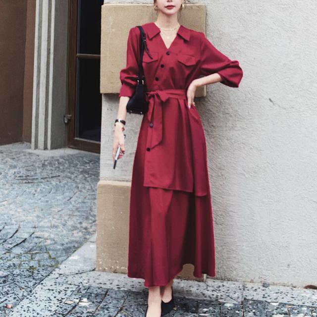 カシュクール シャツ ワンピース シャツワンピース 膝下 ロング ロング丈 マキシ マキシ丈 9分丈 アンクル丈 長袖 ボリューム袖 Vネック 襟付き フレア Aライン アシンメトリー ウエストリボン かわいい 大人可愛い きれいめ シンプル カジュアル 大人 上品 おしゃれ かっこいい 大人女子 こなれ感 個性的 モード系 エレガント モダン 主役級 存在感 フォーマル 無地 春 秋 冬 10代 20代 30代 40代 50代 60代 オフィス ビジネス OL 通勤 学生 通学 デート お出かけ 休日