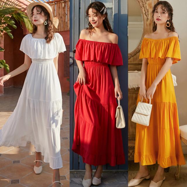オフショルダー ロング ワンピース フレアワンピース ティアードワンピース ロング丈 マキシ マキシ丈 アンクル丈 オフショル フレア 切り替えデザイン ドッキング フリル かわいい 大人可愛い きれいめ シンプル カジュアル 大人 上品 おしゃれ 大人女子 こなれ感 ラフ ラブリー キュート ガーリー セクシー 抜け感 無地 夏 10代 20代 30代 40代 50代 60代 デート 休日 リゾート 旅行 海 着回し 普段使い 楽ちん 体系カバー S M L XL ホワイト レッド オレンジ 3色展開