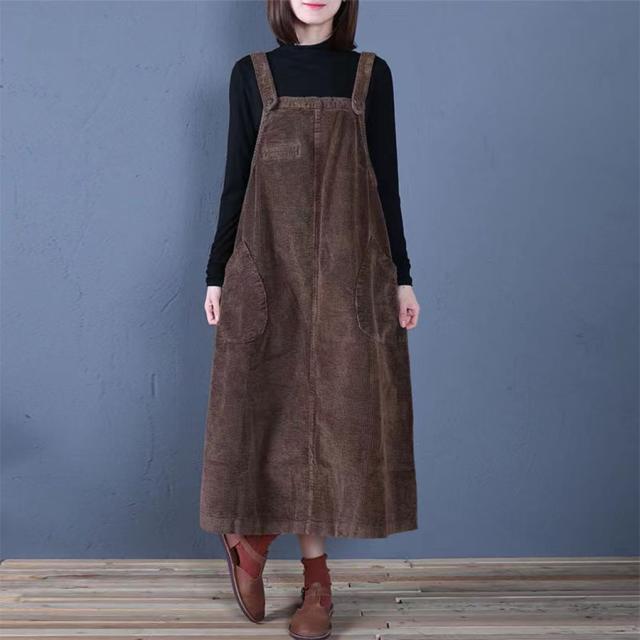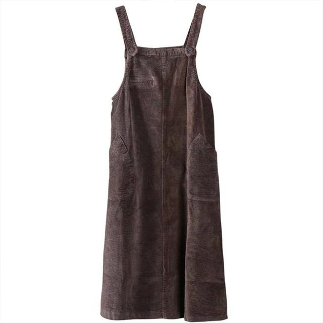 サロペット ワンピース ミモレ ミモレ丈 ロング ロング丈 袖なし ノースリーブ 襟なし セミフレア ストレート Iライン 厚手 コーデュロイ かわいい 大人可愛い きれいめ シンプル カジュアル 大人 上品 おしゃれ レトロ アジアン 大人女子 こなれ感 ラフ ルーズ 個性的