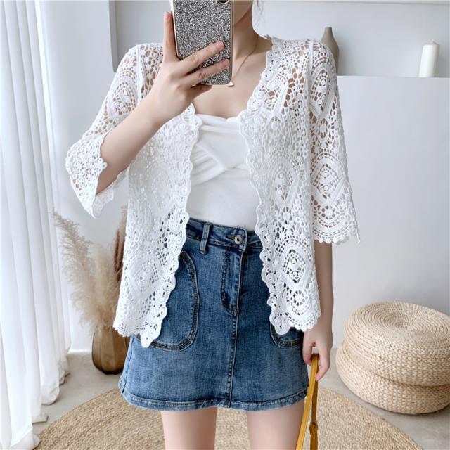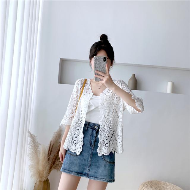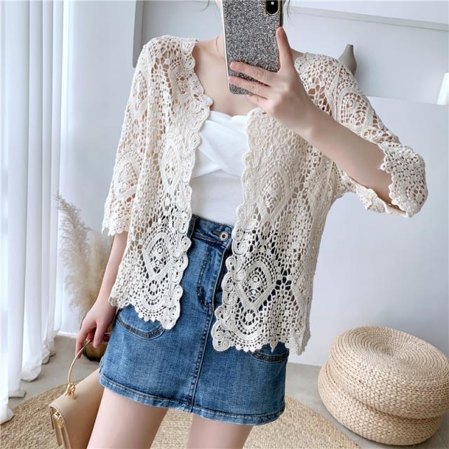 クロシェニット クロシェカーディガン 透かし編みニット 透かし編みカーデ トップス カーディガン ショール ボレロ ミディアム丈 ミドル丈 袖あり 7分袖 七分袖 スリム レース 前開き クロシェ 透け感 かわいい 大人可愛い きれいめ カジュアル おしゃれ お洒落 大人可愛い
