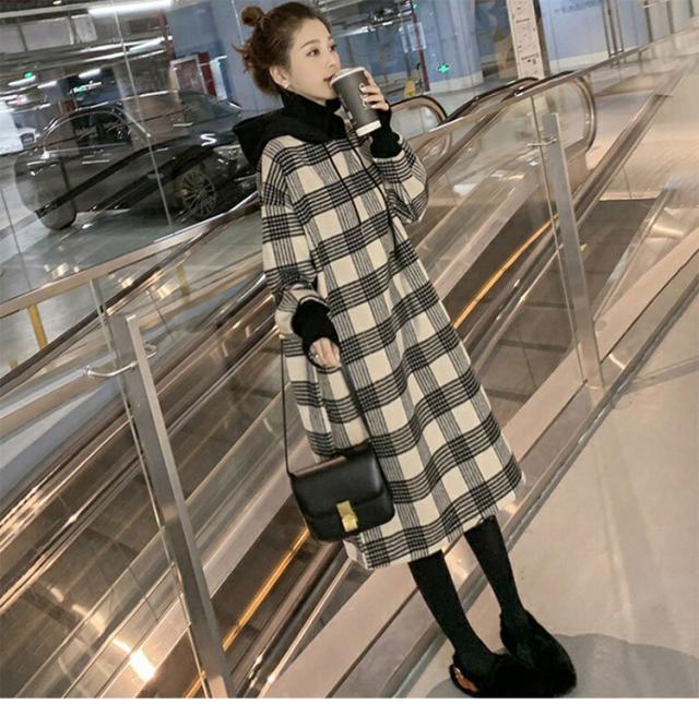 ワンピース フーディー 膝丈 ひざ丈 ミモレ ミモレ丈 袖あり 長袖 ハイネック タートルネック 襟なし セミフレア Aライン フード付き かわいい 大人可愛い きれいめ シンプル カジュアル 大人 上品 おしゃれ 大人女子 こなれ感 ラフ 個性的 クール エレガント モダン チェック柄 グレンチェック 秋 冬 10代 20代 30代 レディース デート お出かけ 女子会 休日 着回し 普段使い 韓国 オルチャン ファッション コーデ スタイル 楽ちん モテ 体系カバー トレンド インスタ映え ゆったり