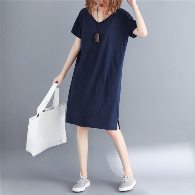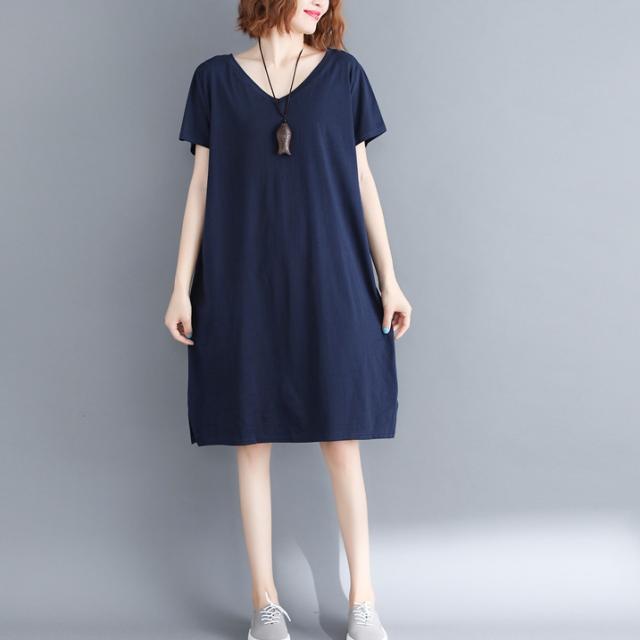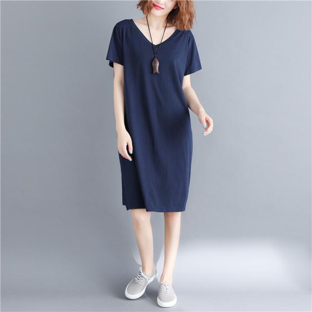 ワンピース ワンピドレス 膝丈 ひざ丈 袖あり 半袖 Vネック 襟なし スリム タイト 細身 ストレート Iライン スリット サイドスリット バックコンシャス 綿 かわいい 大人可愛い シンプル カジュアル 大人 アジアン エスニック ラフ スポーティー 無地 夏 10代 20代 レディース
