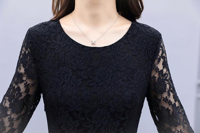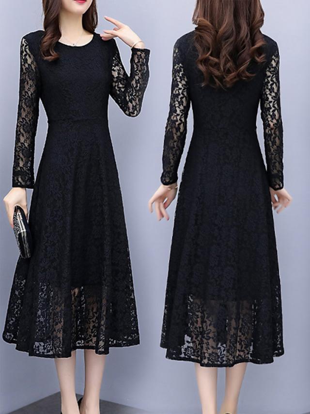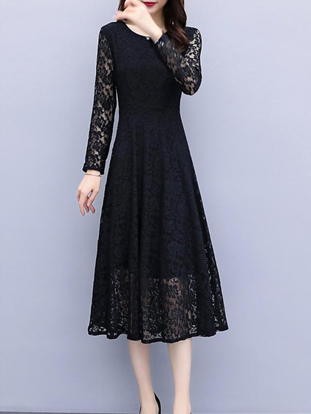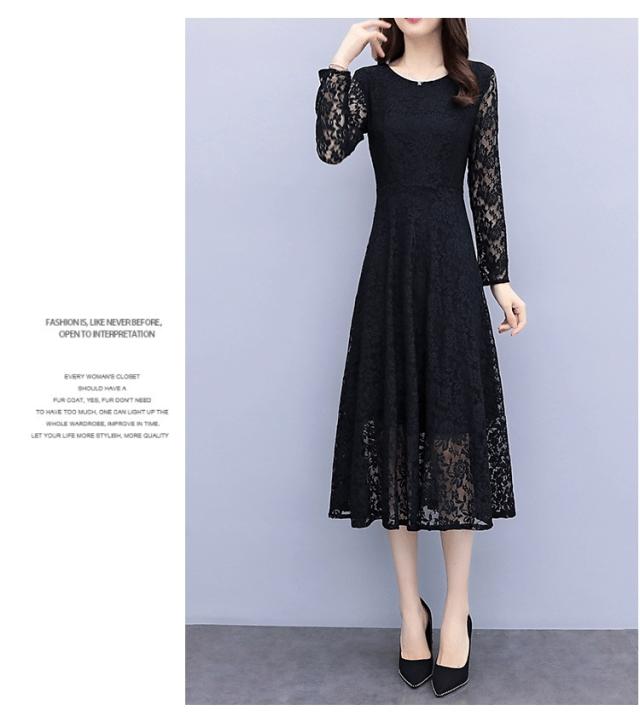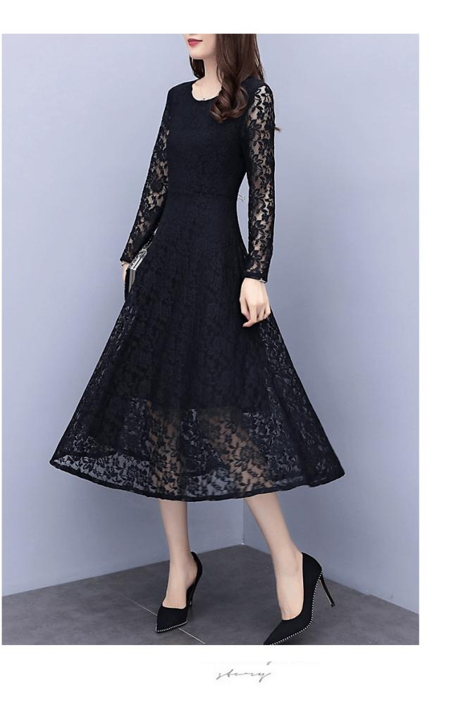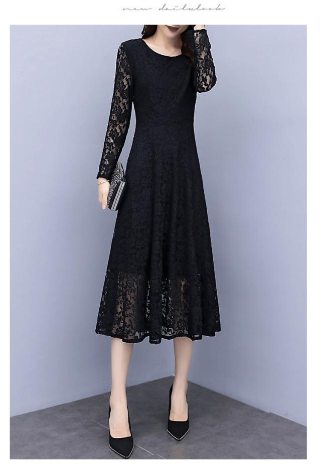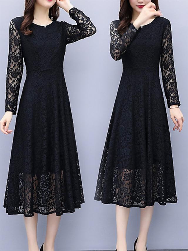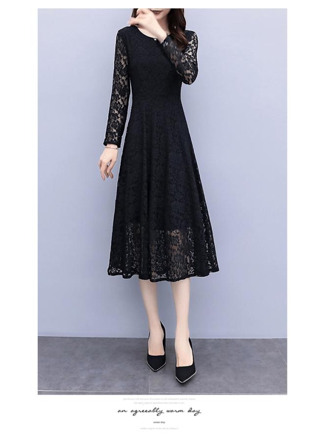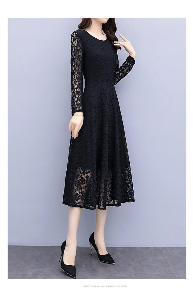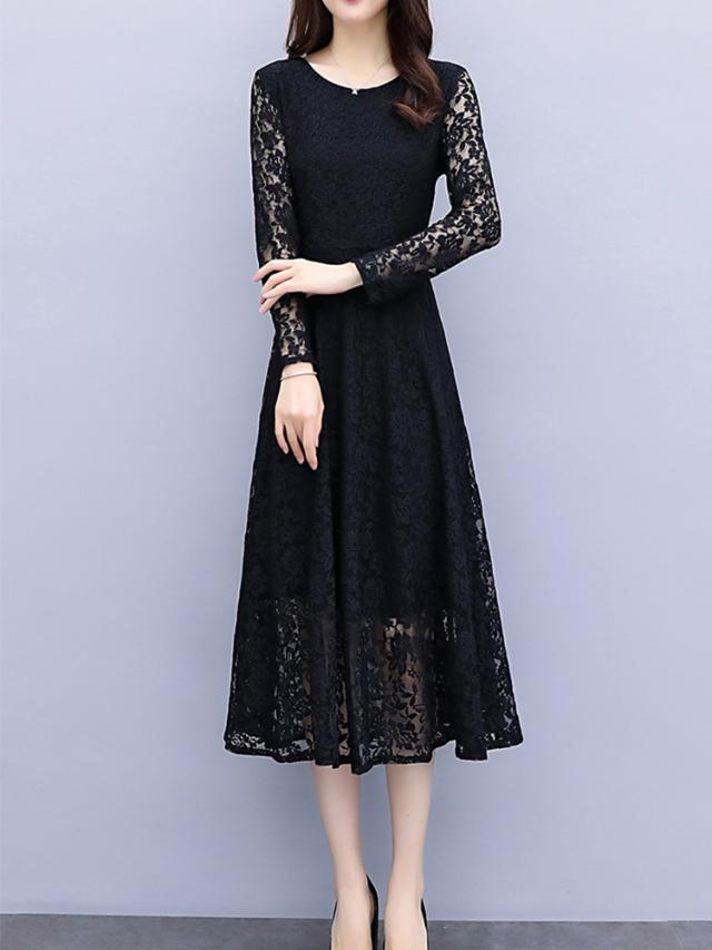 花柄 レース ロング ドレス パーティードレス パーティドレス 結婚式ドレス 結婚式のドレス 膝下 ミモレ ミモレ丈 ロング丈 袖あり 長袖 Uネック クルーネック Aライン フレア 透け感 シースルー かわいい 大人可愛い きれいめ シンプル 大人 上品 おしゃれ 大人女子 こなれ感