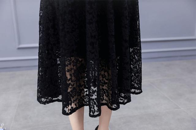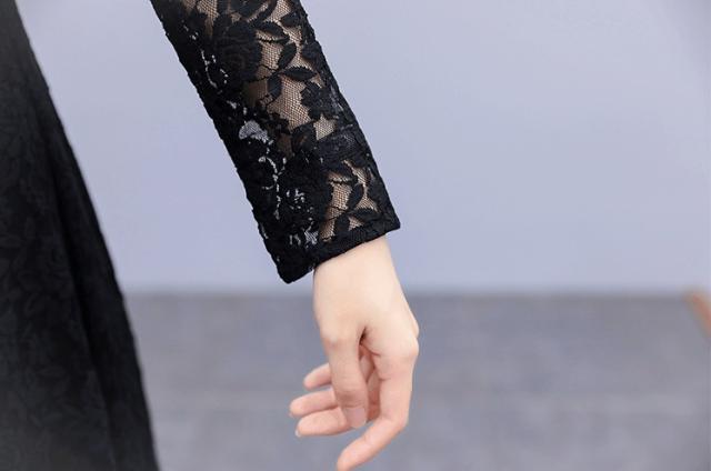上品クラッシックなレースを贅沢に使用した華やかなデザインで、着丈もロング丈で大人の女性をアピールしてくれます。