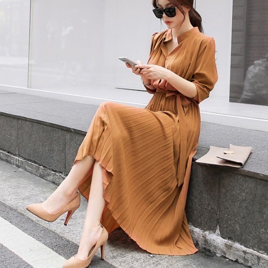 ウエストマークプリーツワンピース ミモレ ミモレ丈 ロング ロング丈 マキシ マキシ丈 9分丈 袖あり 5分袖 五分袖 襟なし タイト 細身 かわいい 大人可愛い きれいめ シンプル カジュアル 大人 上品 おしゃれ お洒落 かっこいい こなれ感 ラブリー キュート ガーリー 存在感 抜け感 無地 春 秋 冬 誕生日 10代 20代 30代 40代 50代 レディース 女性用 OL 通勤 学生 通学 デート お出かけ 女子会 お泊まり 休日 パーティー リゾート 旅行 プール ホテル ガーデン オレンジ